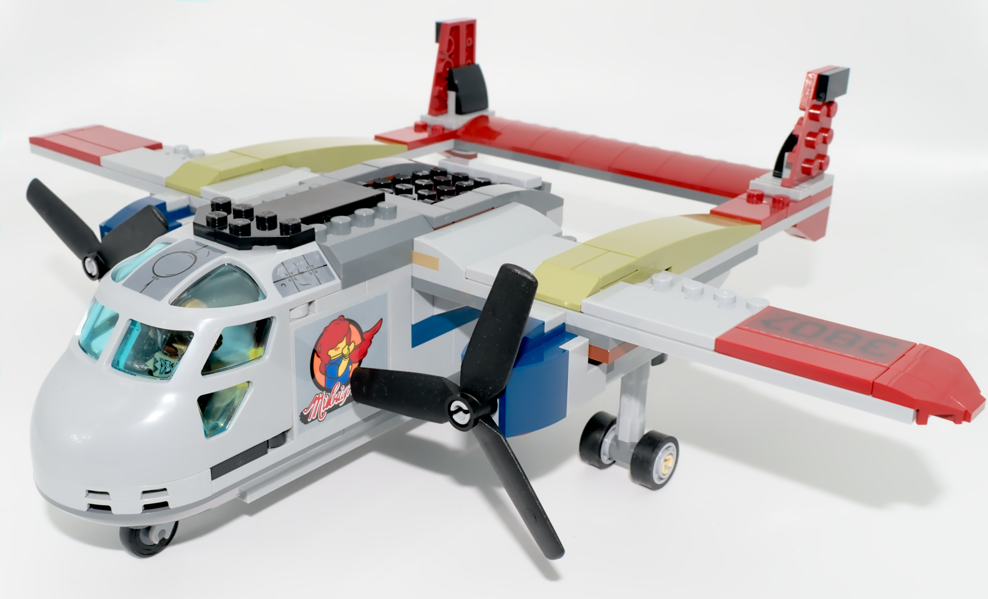 La figurine de ce dernier est aussi grande que l’avion. Son montage est très simple : on assemble des pièces déjà formées, exclusives au modèle (ailes, bec, corps). Mais la qualité LEGO étant ce qu’elle est, on a déjà l’impression d’avoir un vrai jouet dans les mains, avec sa personnalité.