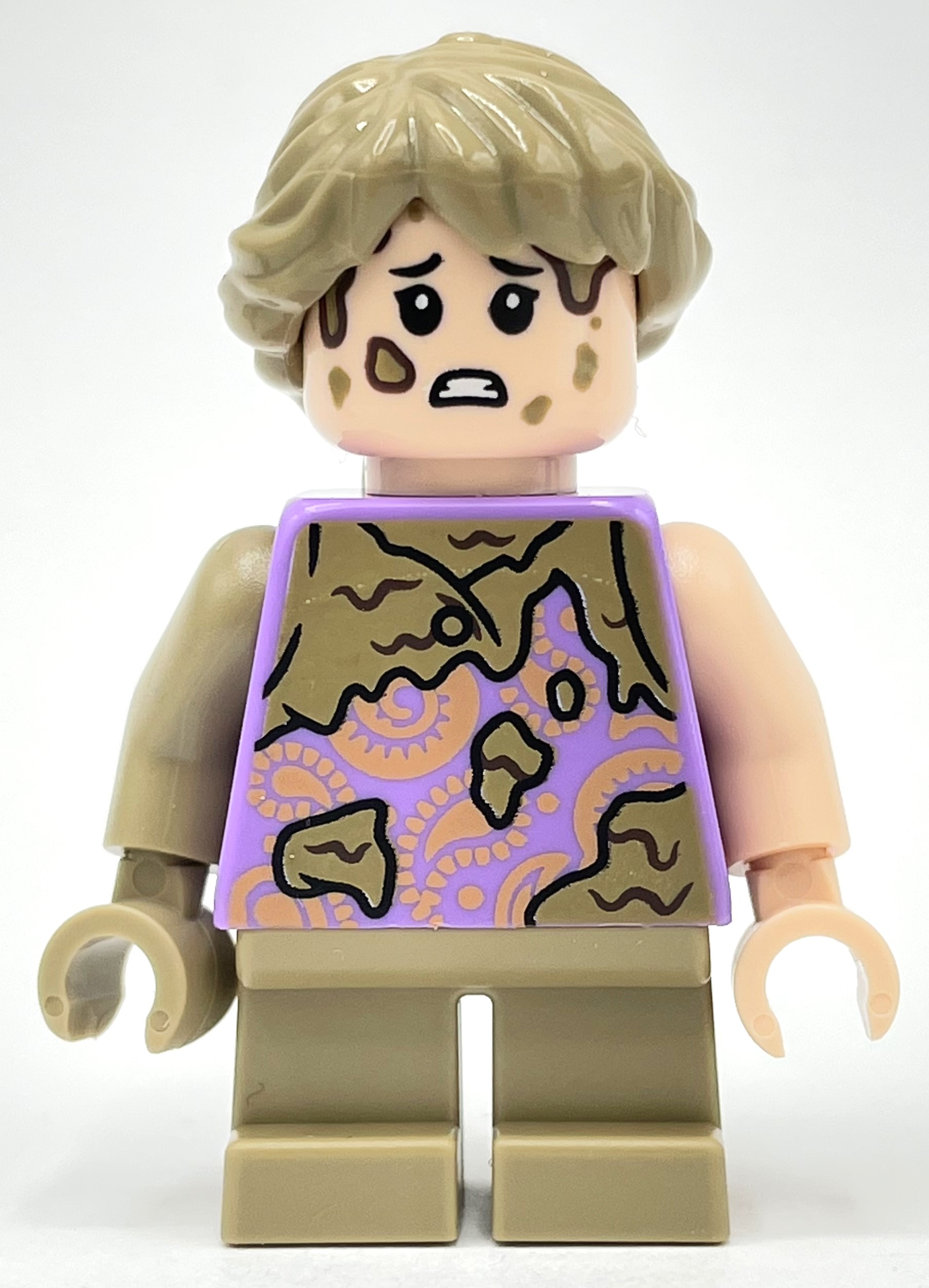 Outre Rexy, le set contient les deux Ford Explorer (dont une bien aplatie) devant l’enclos défoncé. Évidemment, on retrouve les minifigs de Ian Malcolm, Alan Grant, et les enfants Lex et Tim Murphy.