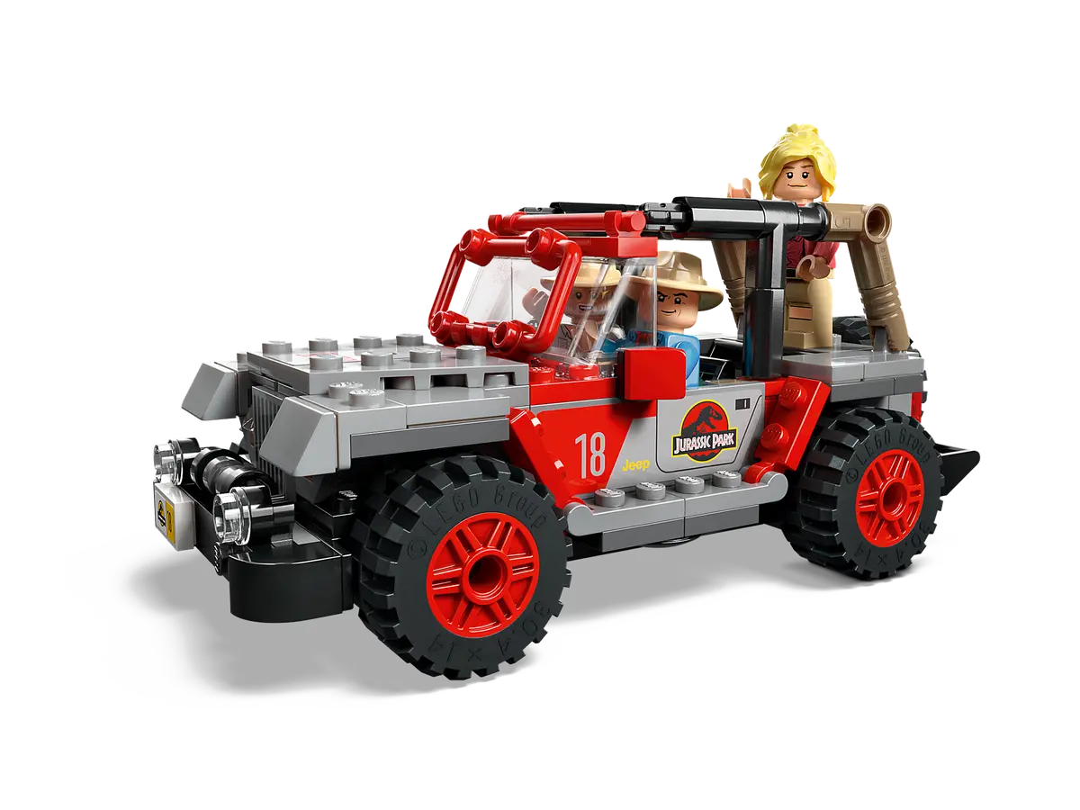 La Jeep en question est donc celle qui amène Ellie, Alan et Ian jusqu’au centre des visiteurs, en faisant halte aux pieds du fameux Brachiosaurus. Sa construction est similaire à celle du set 76958 : on est donc en terrain connu, au moins sur le chassis. C’est-à-dire qu’elle est agréable et gratifiante, visuellement cohérente avec les autres véhicules de la gamme.