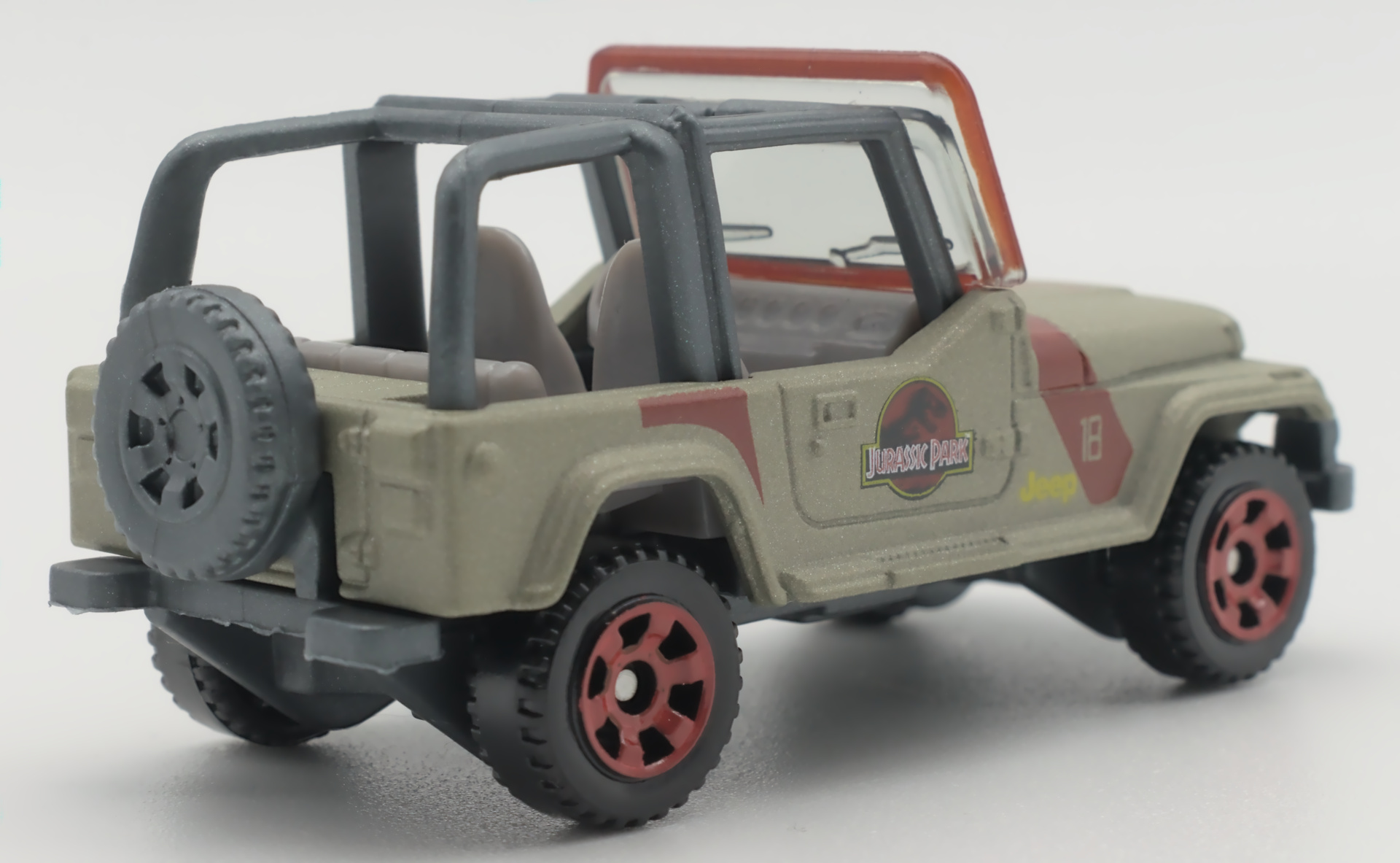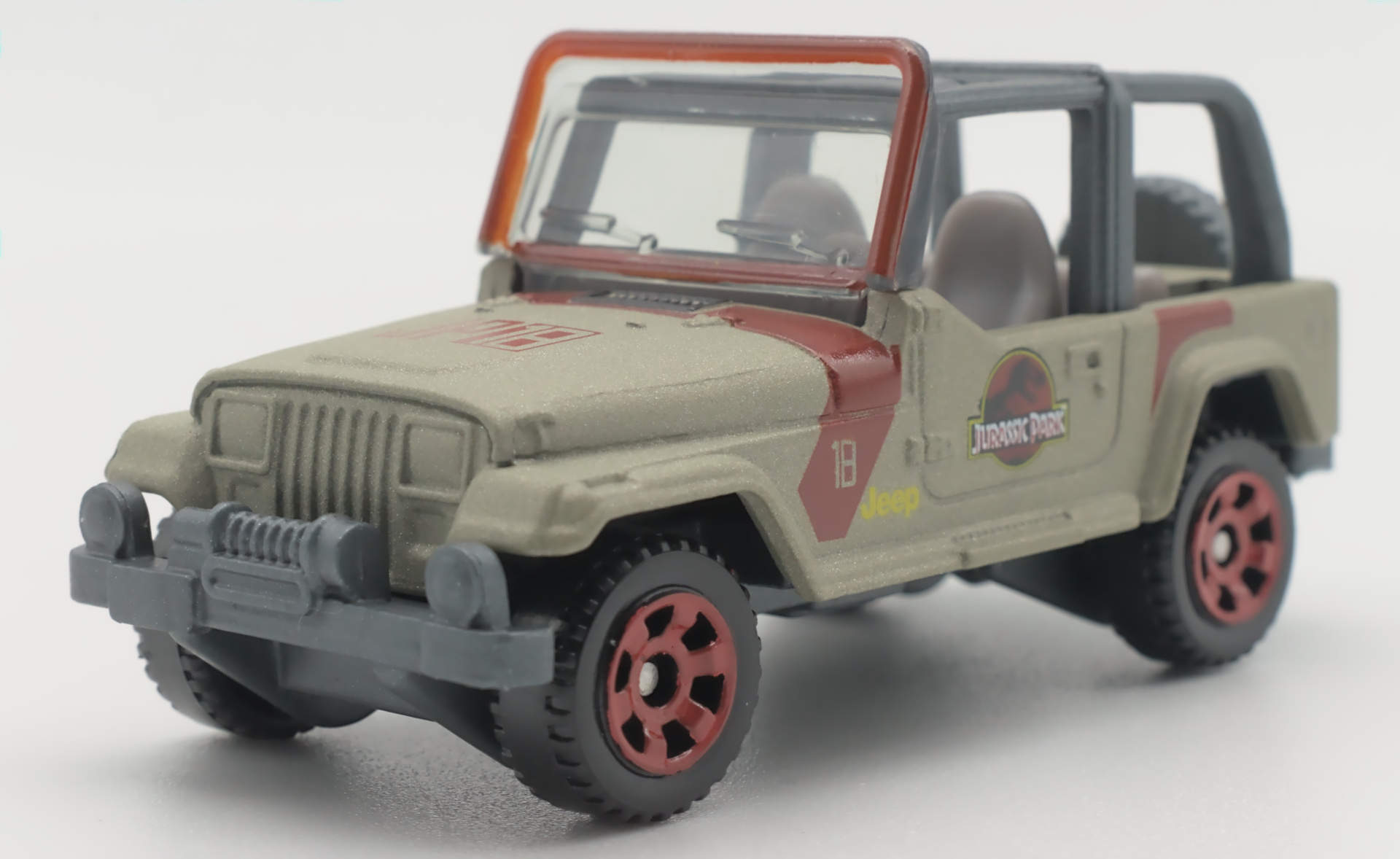 La Jeep Wrangler #18 n’a fait que de courtes apparitions dans la saga Jurassic Park, mais néanmoins notables : c’est le véhicule qui conduisit Ellie Sattler, Alan Grant et Ian Malcom depuis l’hélipad jusqu’au centre des visiteurs au début de Jurassic Park . On ne verra plus cette Jeep avant Jurassic World , jusqu’à ce que Zach et son petit frère Gray tombent dessus par hasard lors de leur fuite des griffes de l’Indominus rex, puis que Claire et Owen l’utilisent pour se cacher du même monstre.