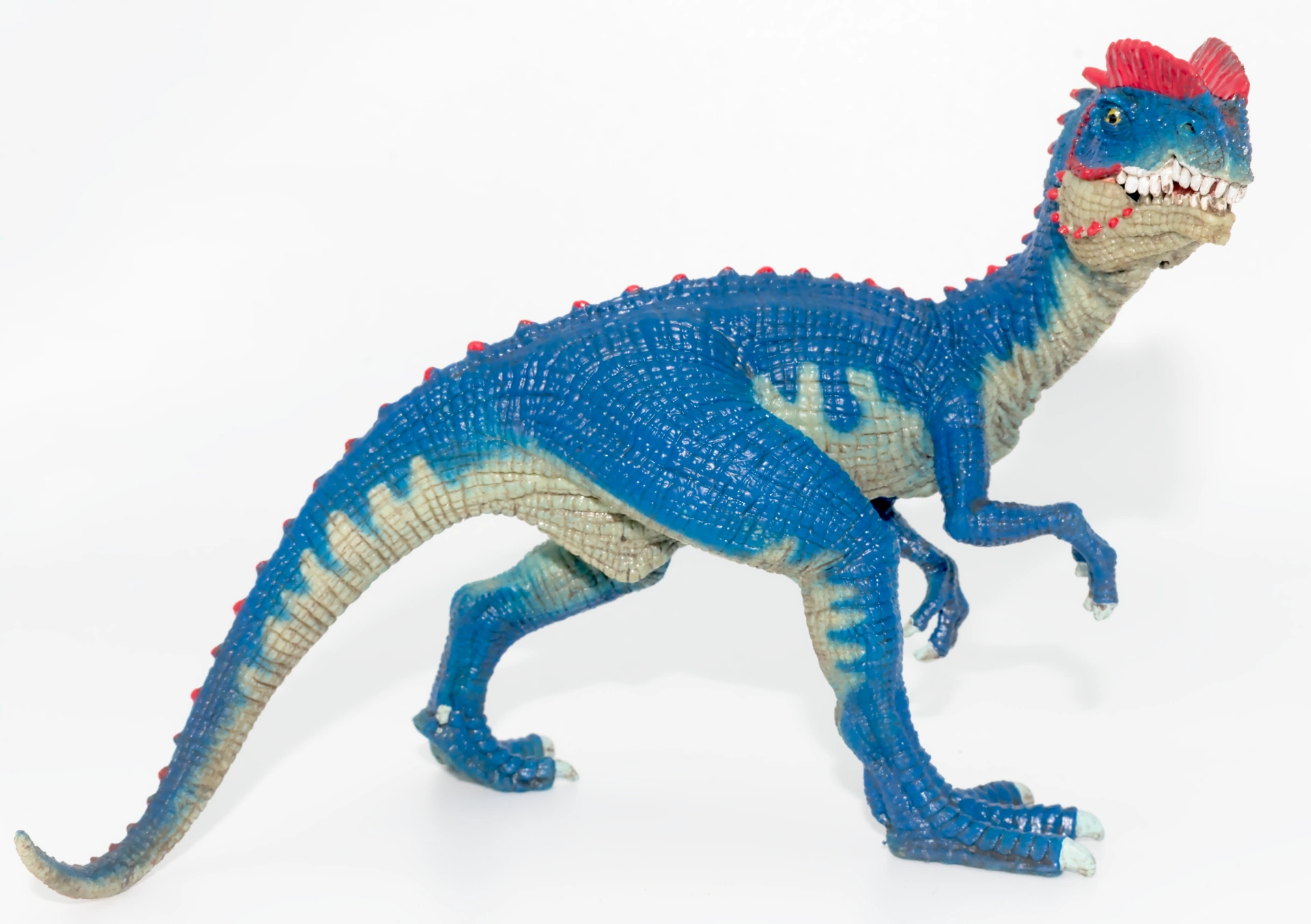 Acheté pour mon anniversaire en même temps que l’Ankylosaurus et le Tyrannosaurus rex , le Dilophosaurus fait partie de la gamme des dinosaures Schleich de taille moyenne, vendus à un prix de 12.99€ à l’écriture de ces lignes. Les figurines de plus petite taille (dont l’Ankylosaurus) sont vendues à 9.99€, et les grandes figurines (comme le T. rex ou le Brachiosaurus ) à 19.99€. Cependant, qualitativement, rien ne distingue ces gammes de figurines. La qualité est constante et excellente.