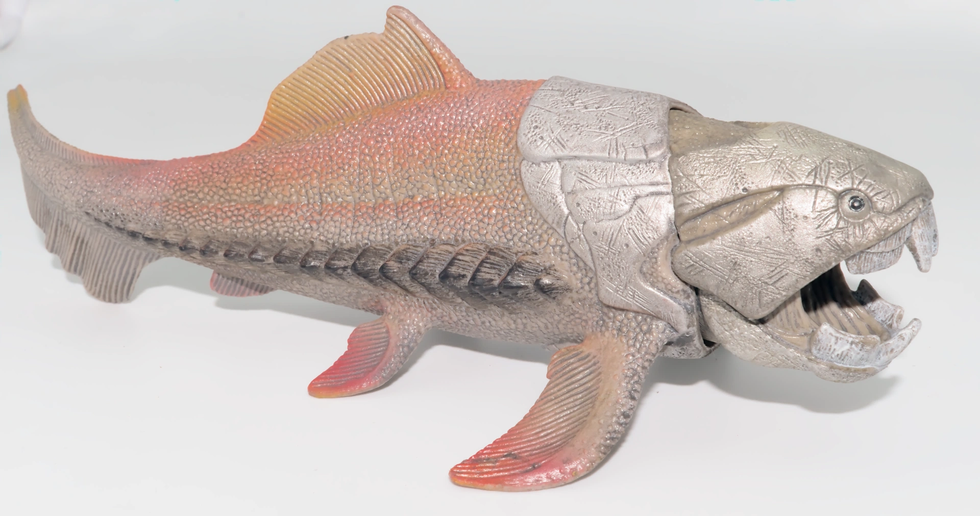 Néanmoins, c’est précisément parce que le Dunkleosteus n’est pas un animal populaire que j’apprécie l’avoir dans ma collection. Ce n’est pas un dinosaure : c’est un placoderme arthrodire, qui a vécu il y a environ 360 millions d’années, ce qui le rend plus ancien que les dinosaures d’environ 100 millions d’années. La figurine Schleich dont je vous parle ici est toutefois dans la collection des dinosaures de Schleich, et pour des raisons pratiques, je le considère comme un dinosaure dans le cadre de ma collection de figurines Schleich.