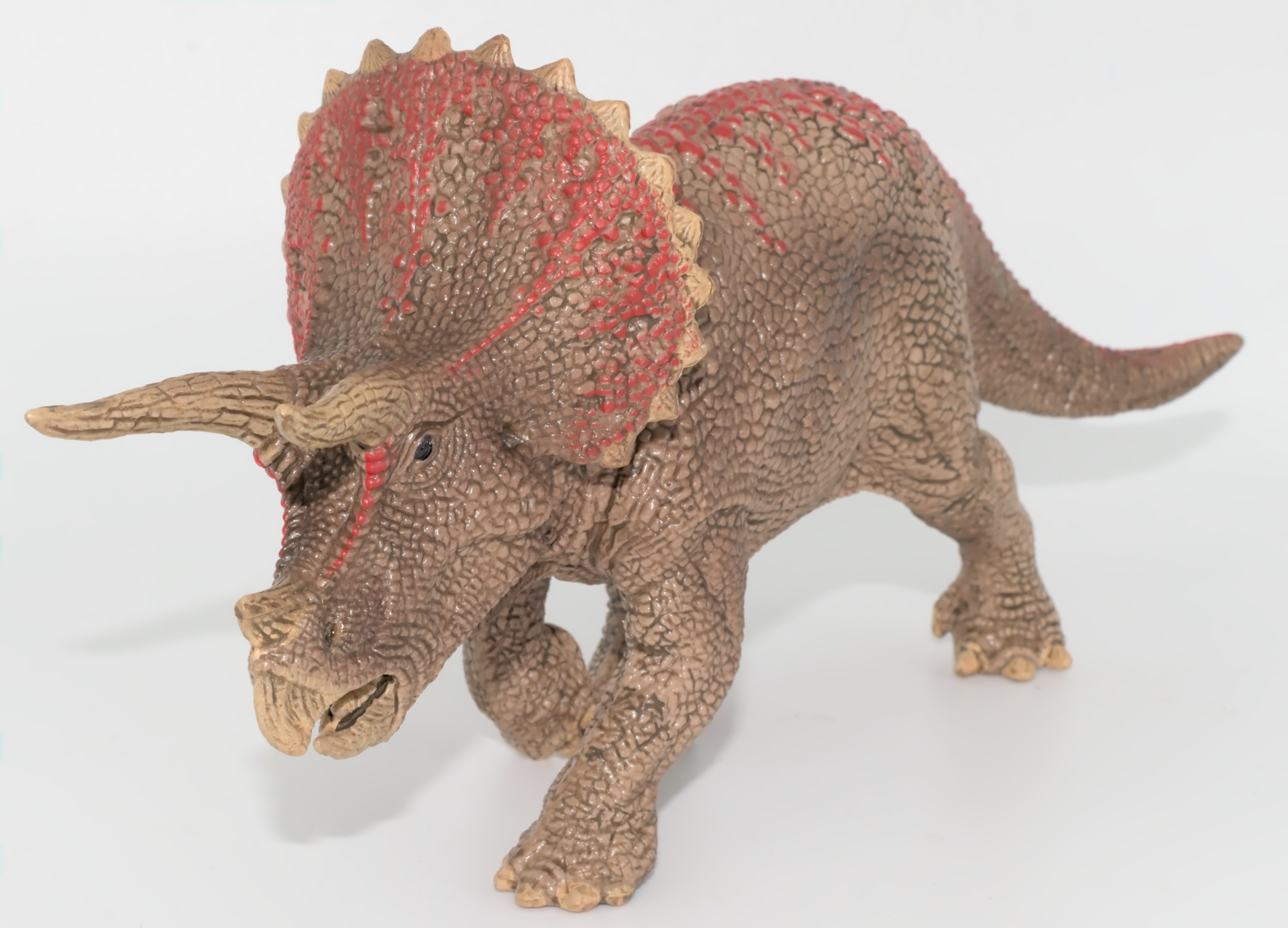 Quand j’étais enfant, le Triceratops était mon deuxième dinosaure préféré, après le Diplodocus et avant le Stegosaurus (que je ne possède pas encore en figurines Schleich à l’heure où j’écris ces lignes, un comble !), le Tyrannosaurus arrivant quatrième, et le Compsognathus clôturant mon top 5. J’aime bien ce que ça dit de ma personnalité. Bref…