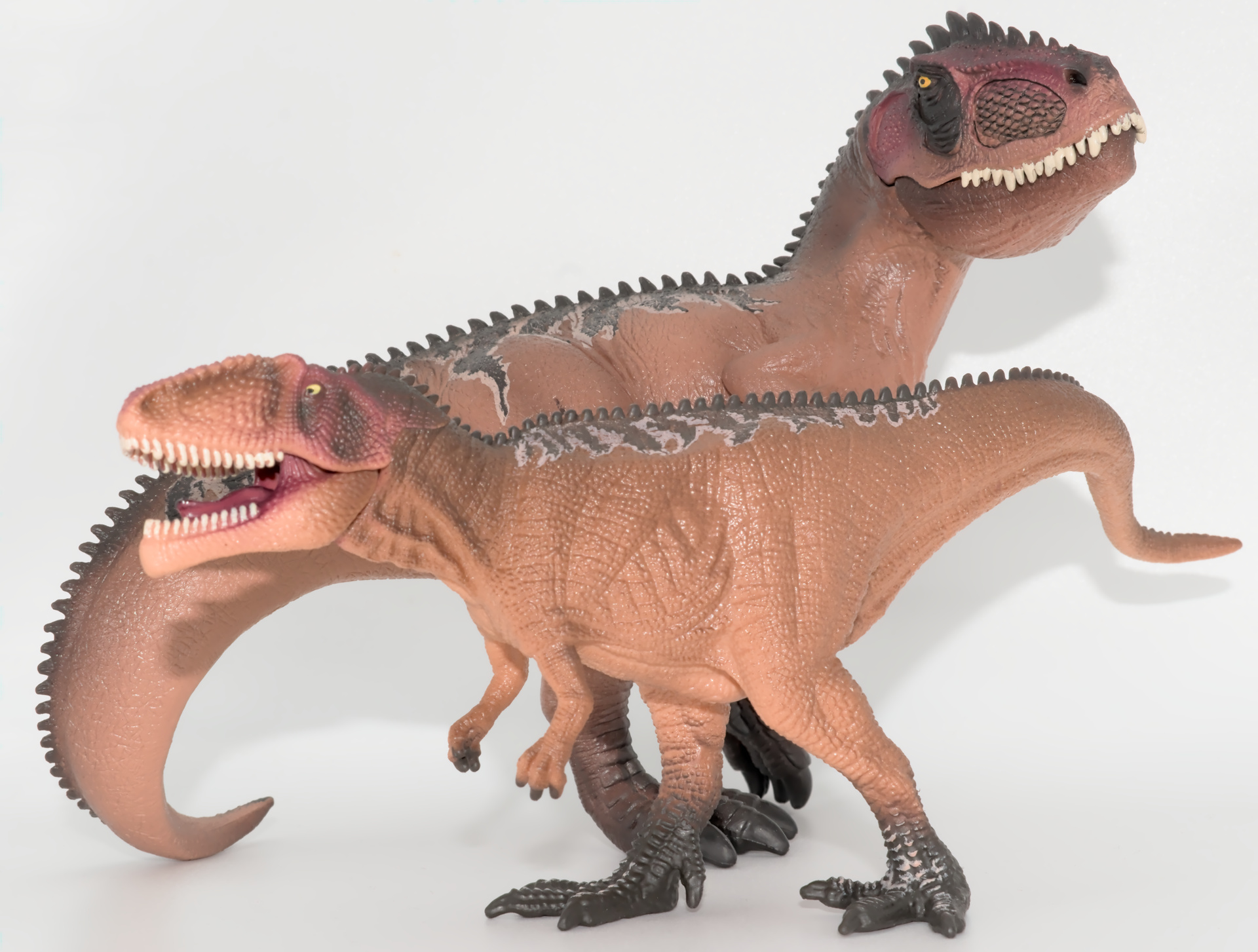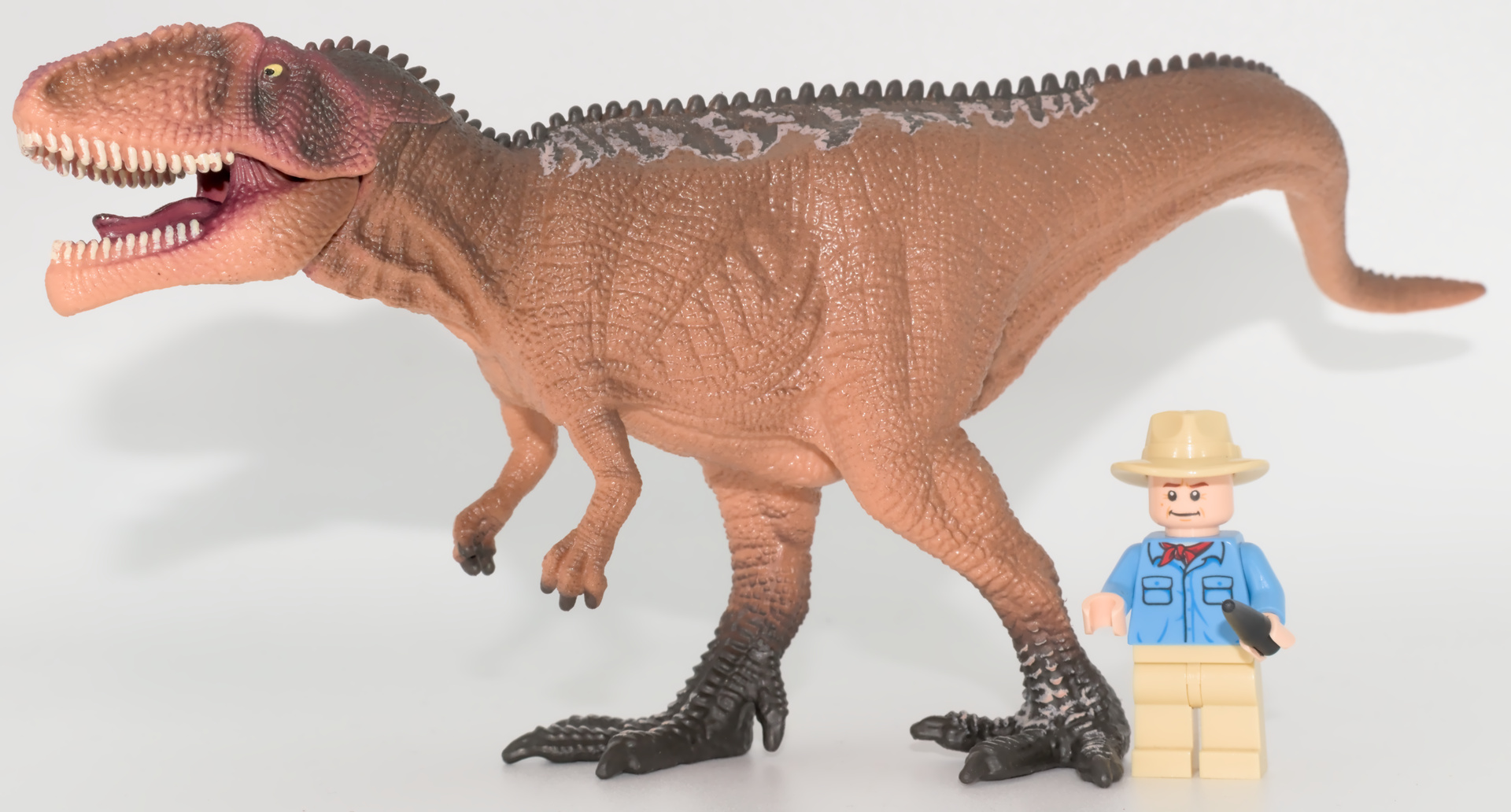 Variante “juvénile” du Giganotosaurus Schleich , cette figurine partage la peinture de son aînée. Bien qu’étant magnifique, un peu de subtilité aurait été appréciée : après tout, même le T. rex juvénile avait eu droit à sa propre robe, malgré une famille déjà bien grande. Ce jeune Giganotosaurus est un peu plus grand que le jeune T. rex.