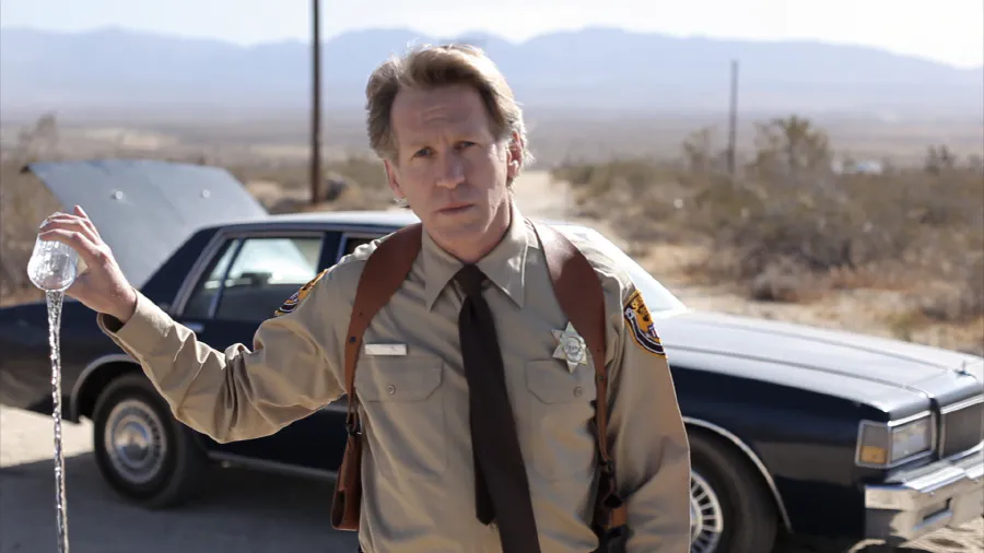 Déjà, parce que l’histoire se déroule dans le désert de Californie, auquel la photographie rend un hommage substantiel. Le minimalisme du film est servi à merveille par ce théâtre, dans lequel les décors fabriqués prennent leur place naturellement. L’esthétique est qualitative, malgré la frugalité du matériel employé (deux appareils photo pour tout le film).