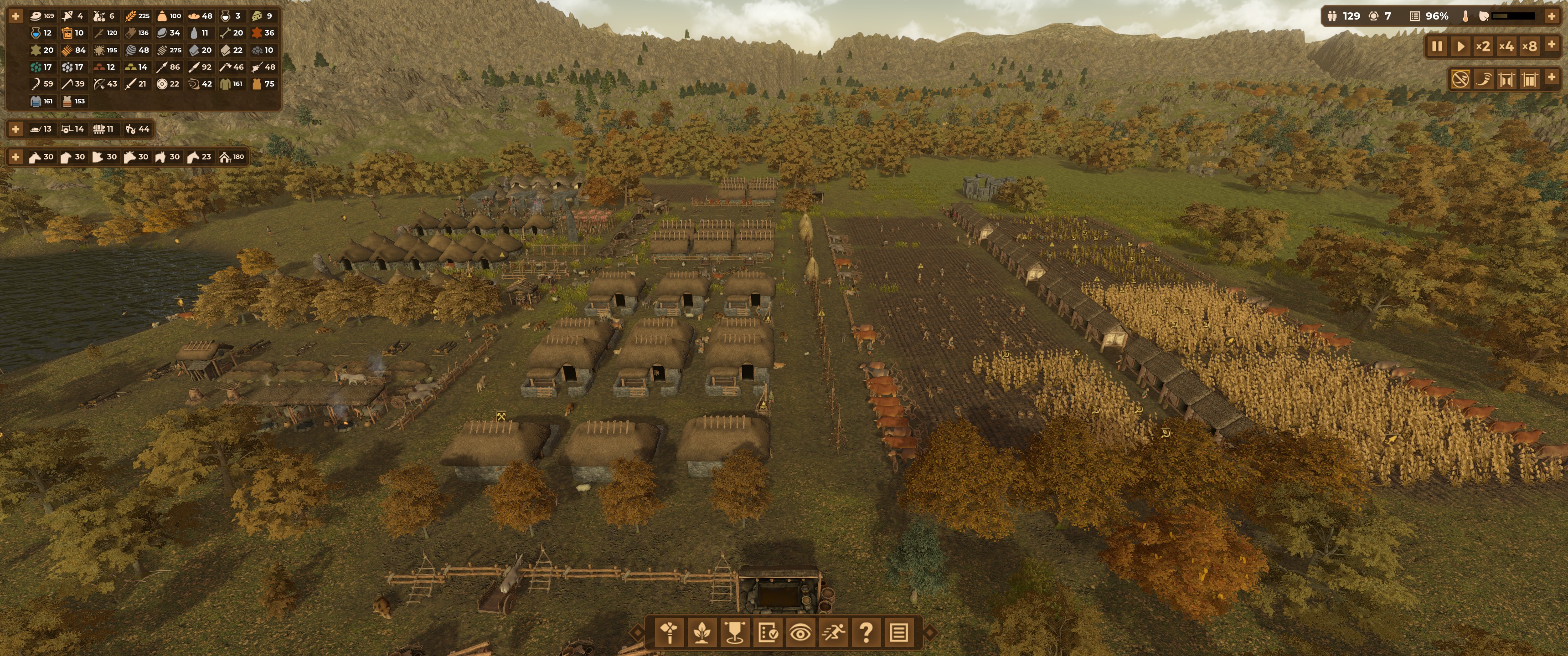 Vers le milieu de partie, on devra, par exemple, faire attention au moment où l’on déclenche la construction de bâtiment en paille, étant donné que celle-ci n’est récoltable qu’en été ou en automne (en fonction des plantations qu’on a choisi de faire). Et ce d’autant qu’il faut compter une réserve pour nourrir les bêtes.
