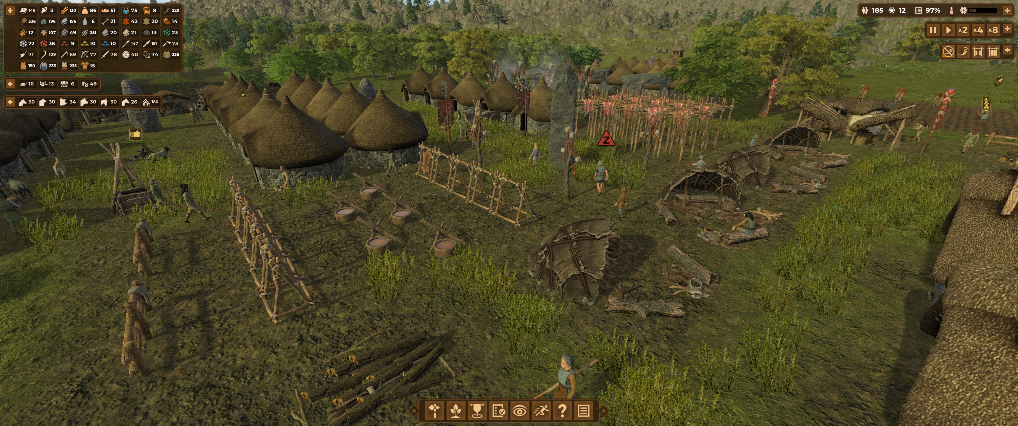 DoM présente une “difficulté” particulière qui ne siéra pas à tout le monde : il faut équilibrer consommation et production de ressources, et y aller progressivement. Ce n’est pas un bac-à-sable où on lance des milliers de constructions en même temps sans aucune incidence. Ici, la gestion des tâches individuelles des membres de la colonie est importante et semble avoir mal été comprise par certains membres de la communauté Steam qui déplorent (parfois avec humour) une “piètre gestion des priorités”. En réalité, c’est précisément ce qui fait l’intérêt de DoM : l’action se déroule au paléolithique, où la main d’oeuvre n’est ni abondante ni inépuisable.