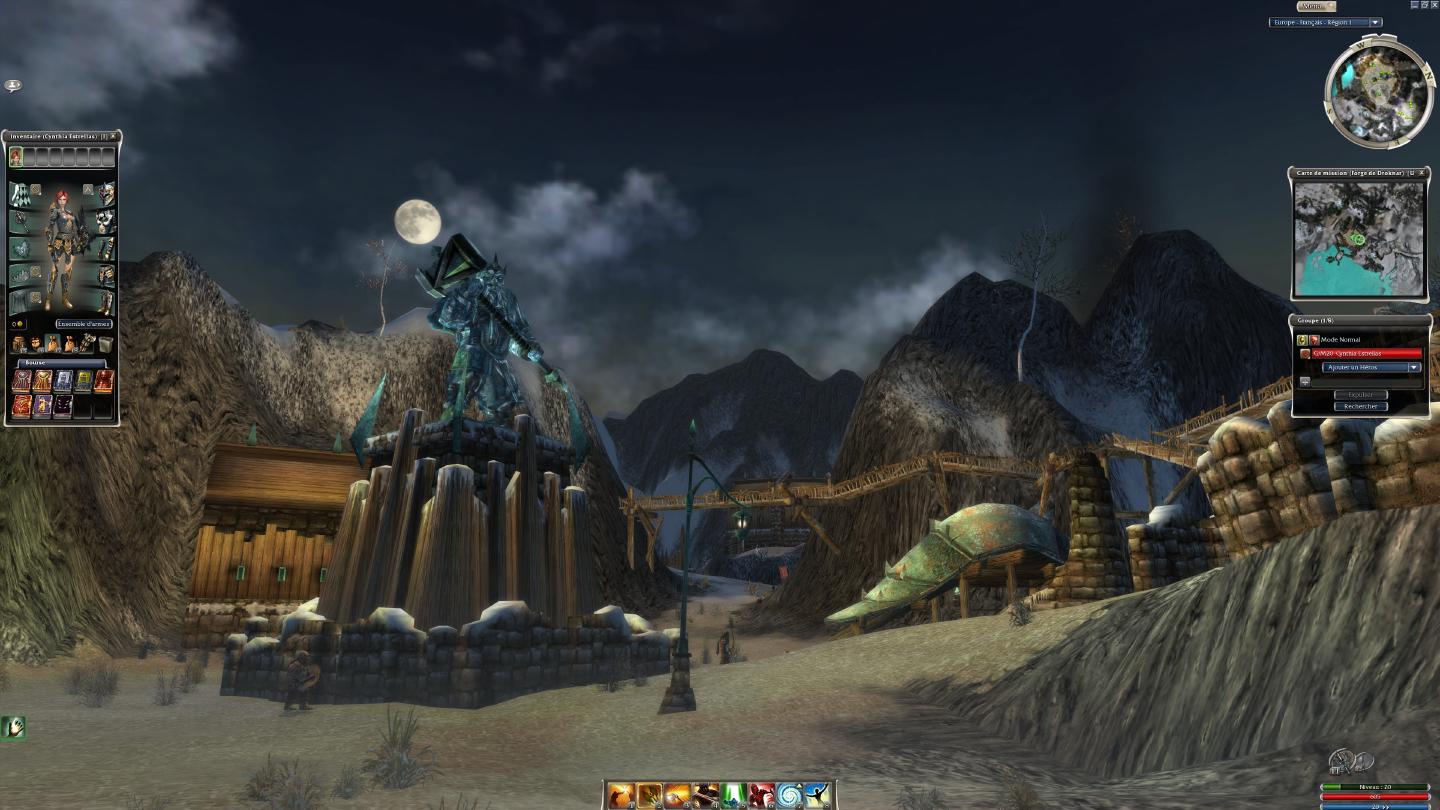 J’avais acheté tout ce qui était sorti (Propheties, Faction, Nightfall, Eye of the North). J’avais monté quelques personnages au niveau maximal, mais c’est surtout ma guerrière, Cynthia Estrellas, qui avait mes faveurs. Elle a tout fait, ou presque ; armure d’élite, arme unique, à l’aise dans la Fissure du Malheur, farmeuse de boules d’ectoplasme et de fragments d’obsidienne, un build parfait.