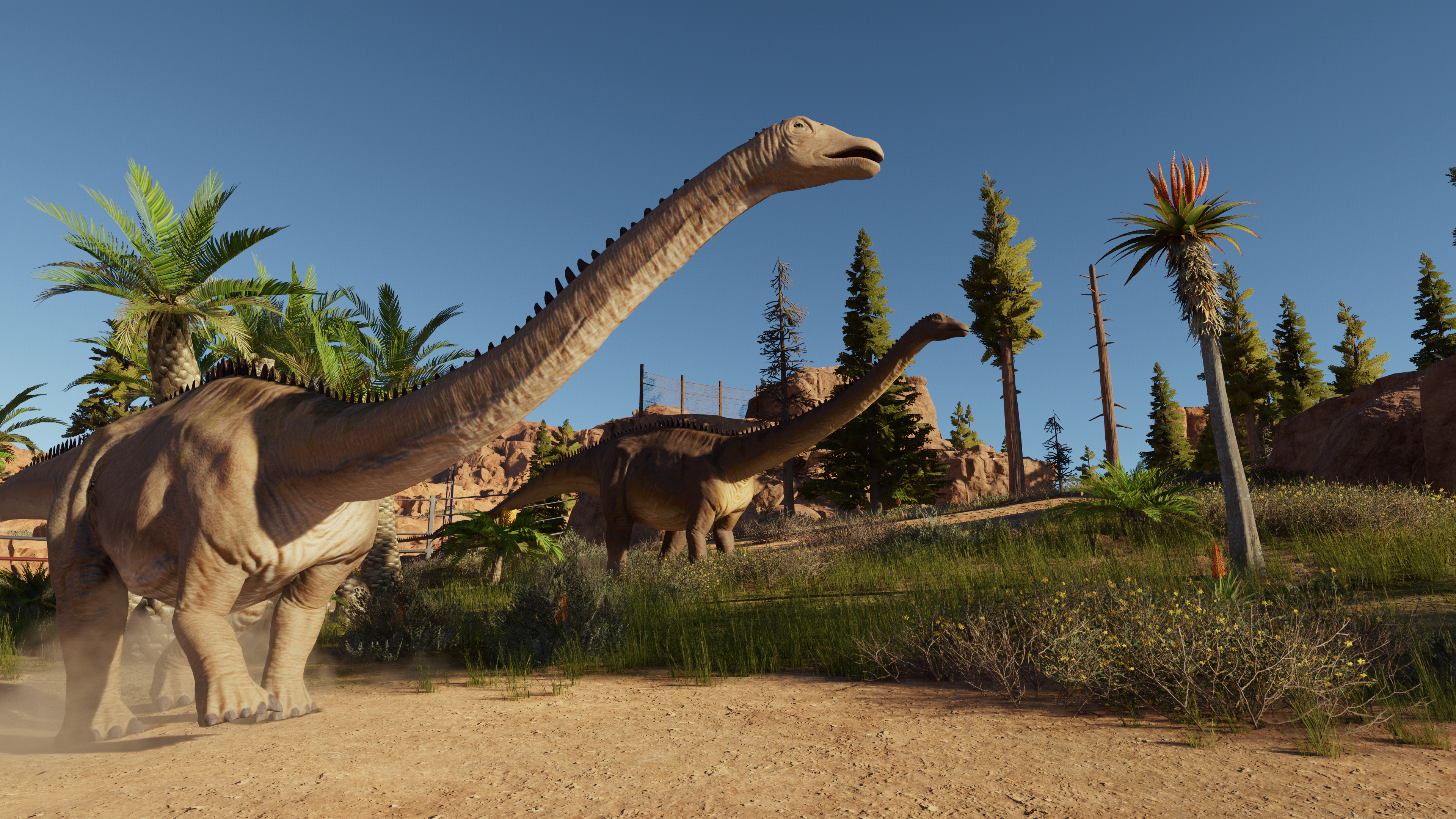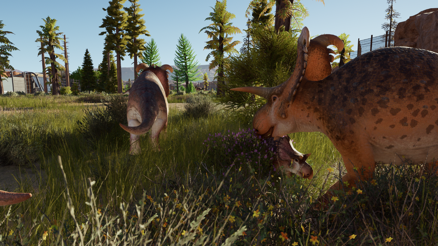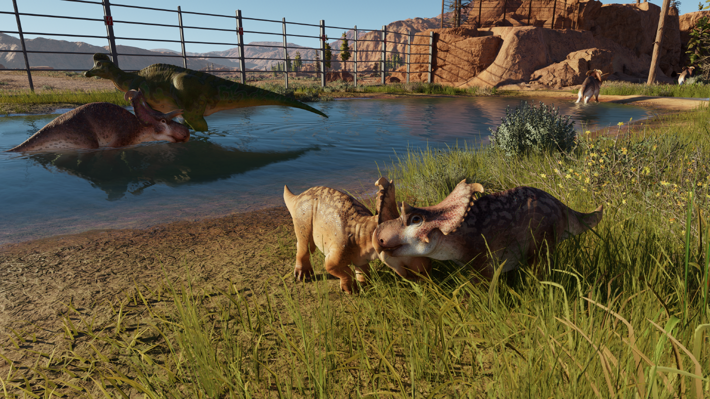 Mais cette vue à la première personne est quelque peu frustrante : instinctivement, je reprends mes réflexes dans ARK: Survival Evolved, je veux bondir, aller partout, gratouiller un dinosaure, interagir avec eux. J’oublie que je suis dans un jeu de gestion de parc, principalement parce qu’à la première personne, je peux aller là où je ne suis pas censé aller en tant que visiteur : à l’intérieur des enclos.
