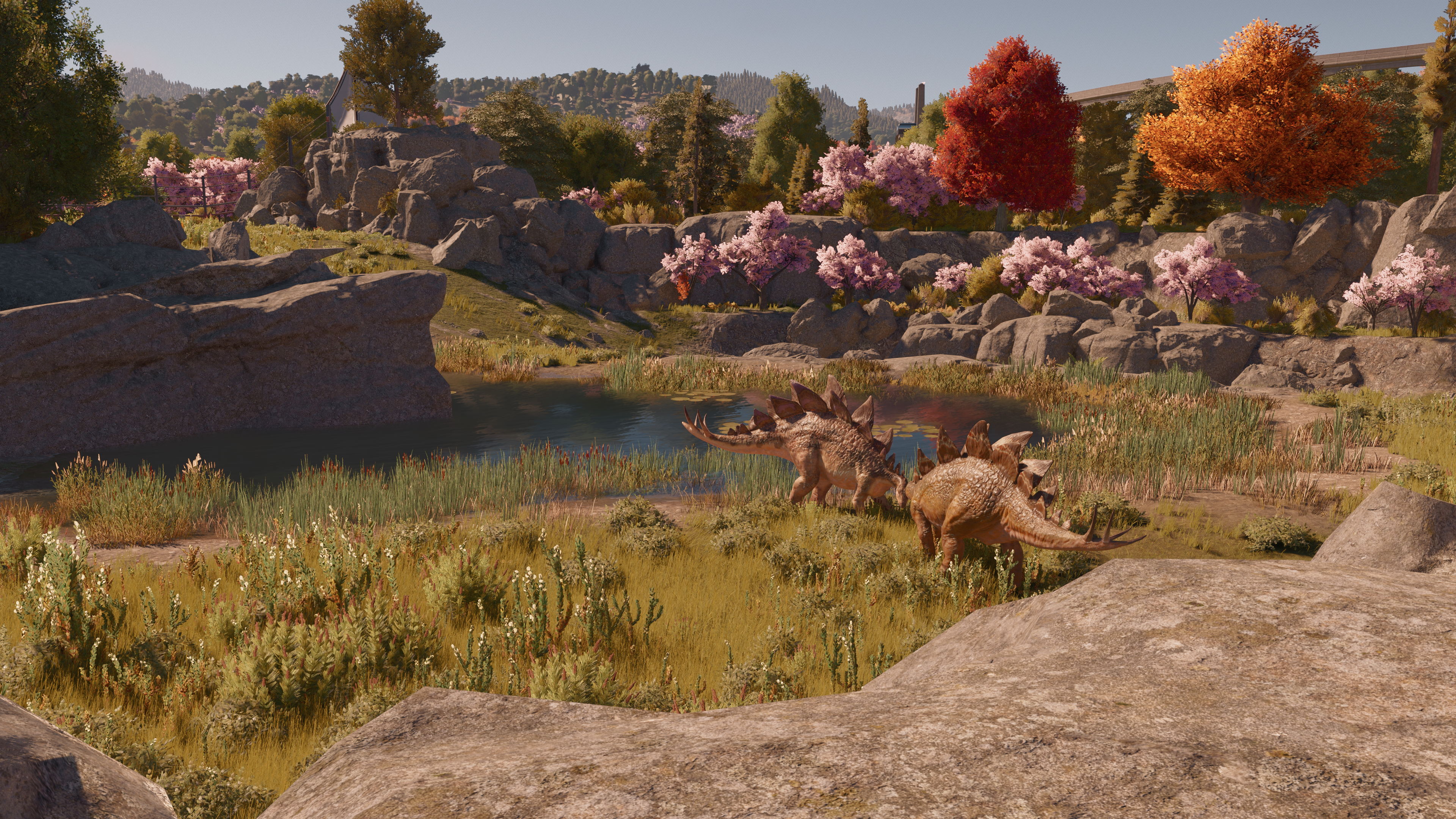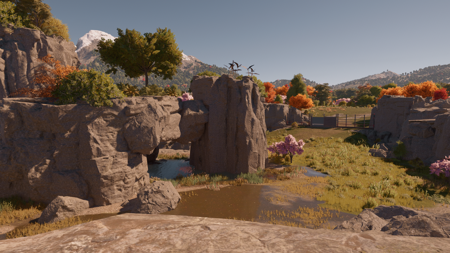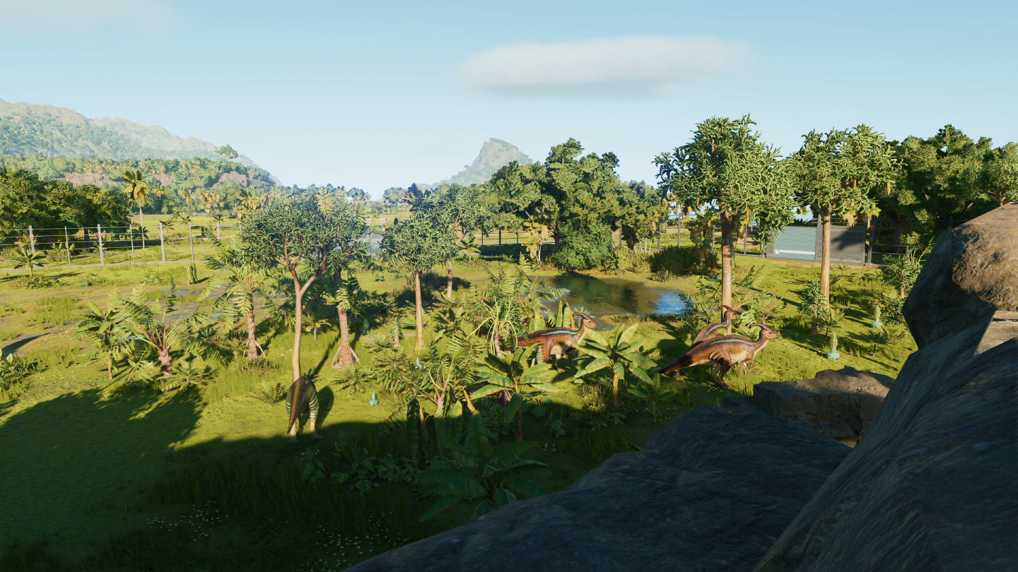 Dans les deux épisodes précédents, je posais mes routes, mes bâtiments, mes clôtures, je m’occupais de mes animaux, et je ne me préoccupais pas du tout de l’aspect esthétique de mes parcs. Mais ici, ça serait une trahison intellectuelle de ne pas exploiter tout ce que le jeu peut nous offrir.