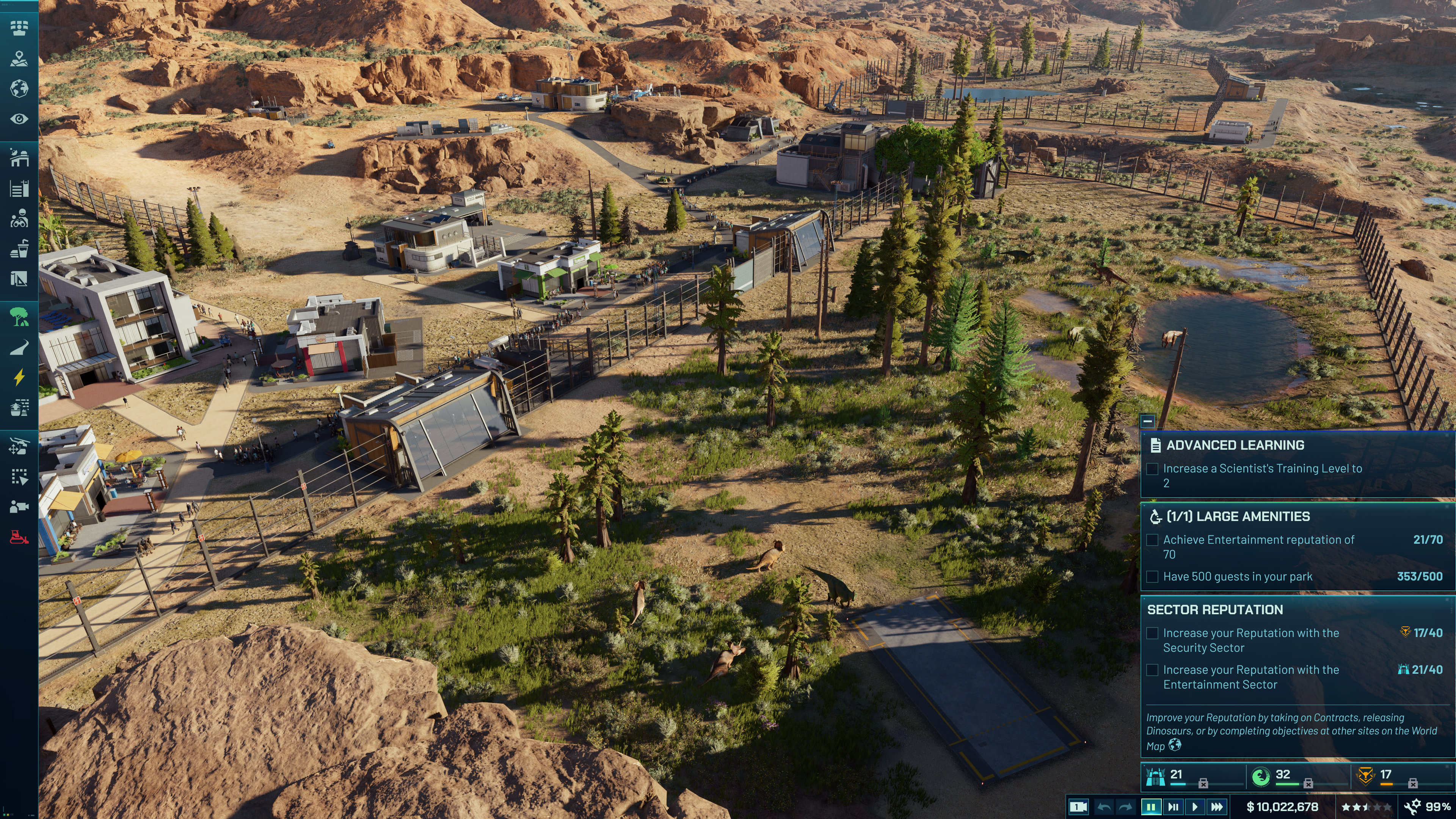 Les habitués de la série de jeux-vidéo trouveront sans doute ces présentations un peu laborieuses, considérant que les mécaniques sous-jacentes n’ont pas vraiment changé. Il s’agit toujours de recruter des scientifiques, d’envoyer des expéditions chercher des fossiles, en extraire l’ADN ou les vendre, jusqu’à pouvoir incuber des œufs, relâchés dans un enclos approprié, tout en s’assurant que les visiteurs sont contents du parc.