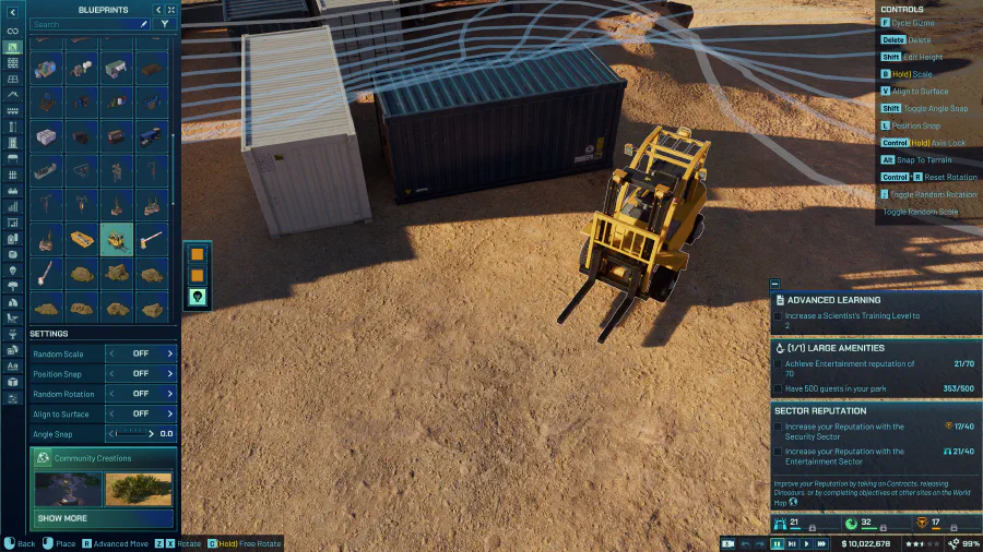 Pourtant, c’est le point qui me faisait le plus peur avec ce nouveau volet : j’ai eu vent de la diversification des outils de constructions, plus proches de Planet Coaster que de Jurassic World Evolution. Et si j’ai si peu joué à Planet Coaster, c’est parce que cette complexité me faisait peur.