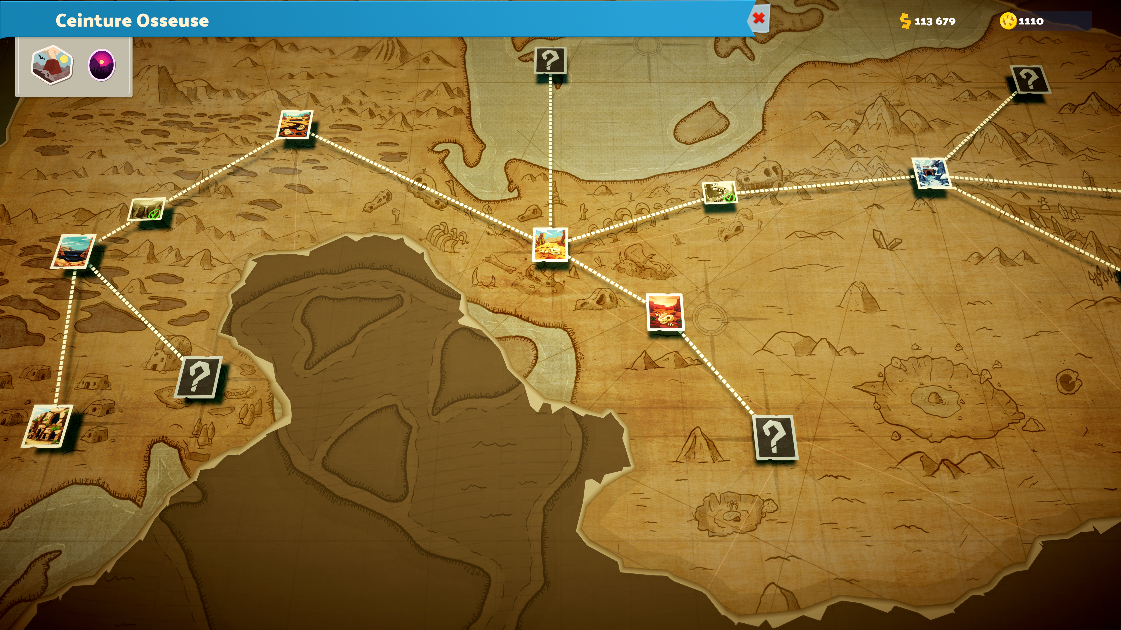 Une des cartes des régions à explorer en expédition, seulement partiellement découverte. Chaque région offre ses propres challenges et ses propres récompenses