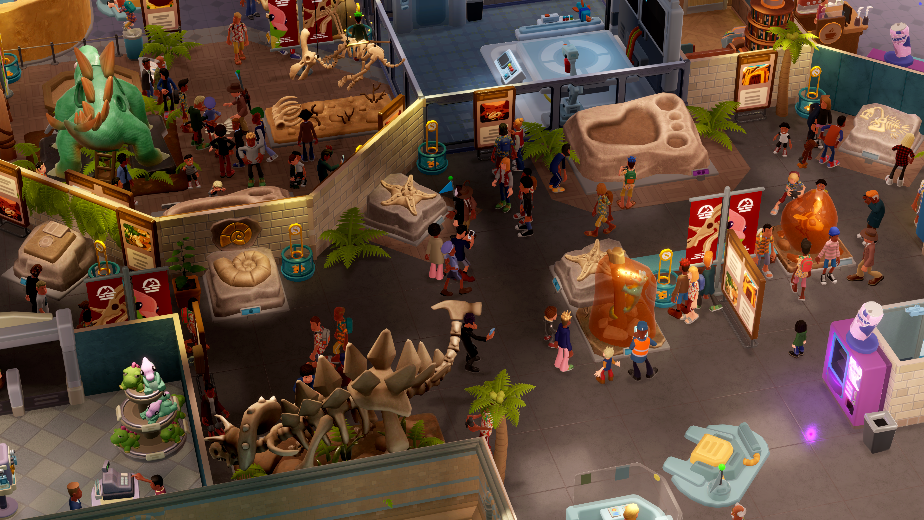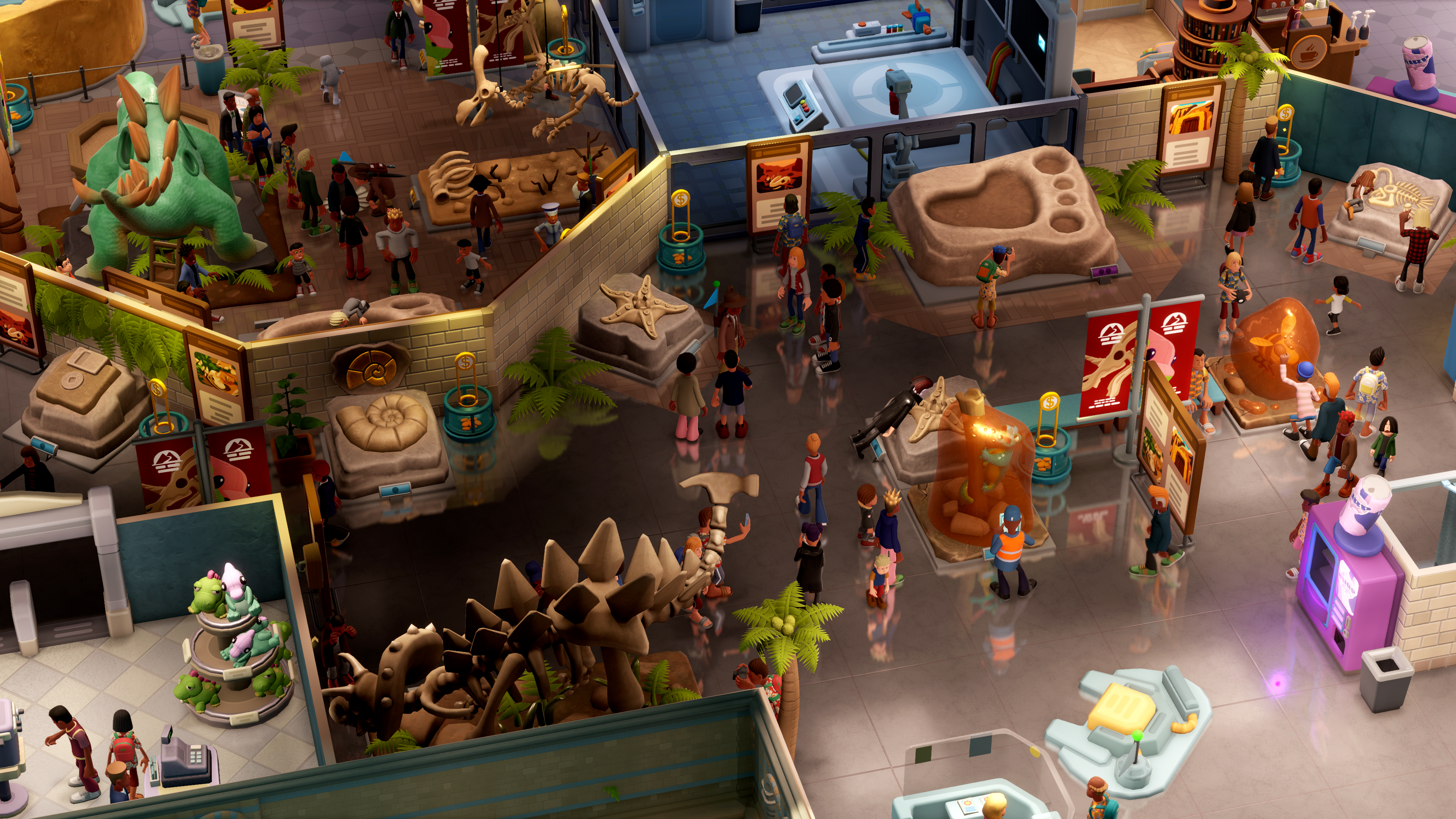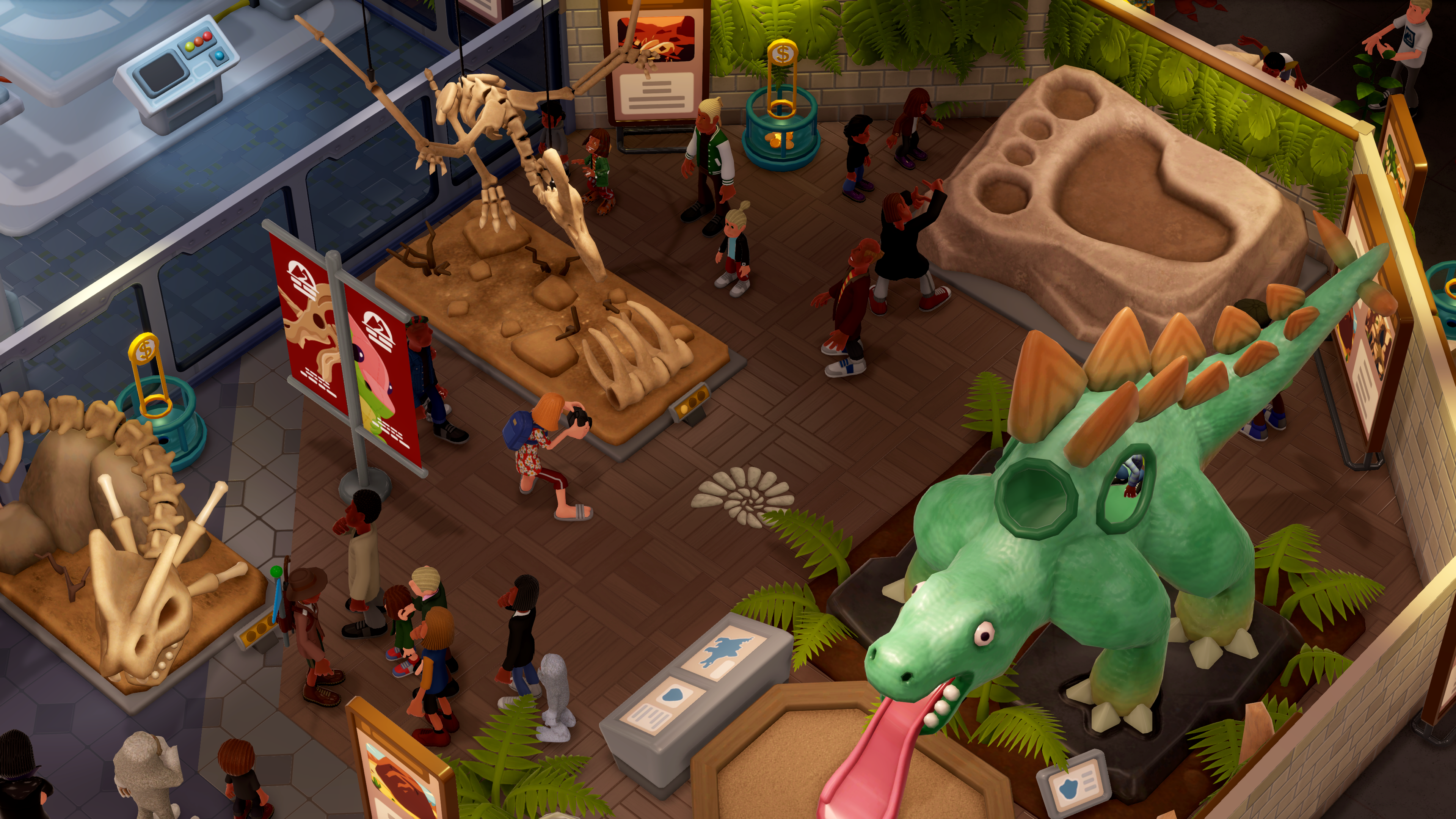 Finalement, j’ai outrepassé ma réluctance visuelle - qui s’est transformée en une acceptation sincère. Tolérer les visages et la morphologie générale des humains a été la première étape. La seconde, tout aussi compliquée pour moi, a été d’accepter que les dinosaures montrés dans “mon” musée ne seront que des monstres de cartoon : aucune véracité scientifique ici, et compte tenu que la franchise Two Point développe son propre lore et sa propre iconographie, c’est tout à fait approprié.
