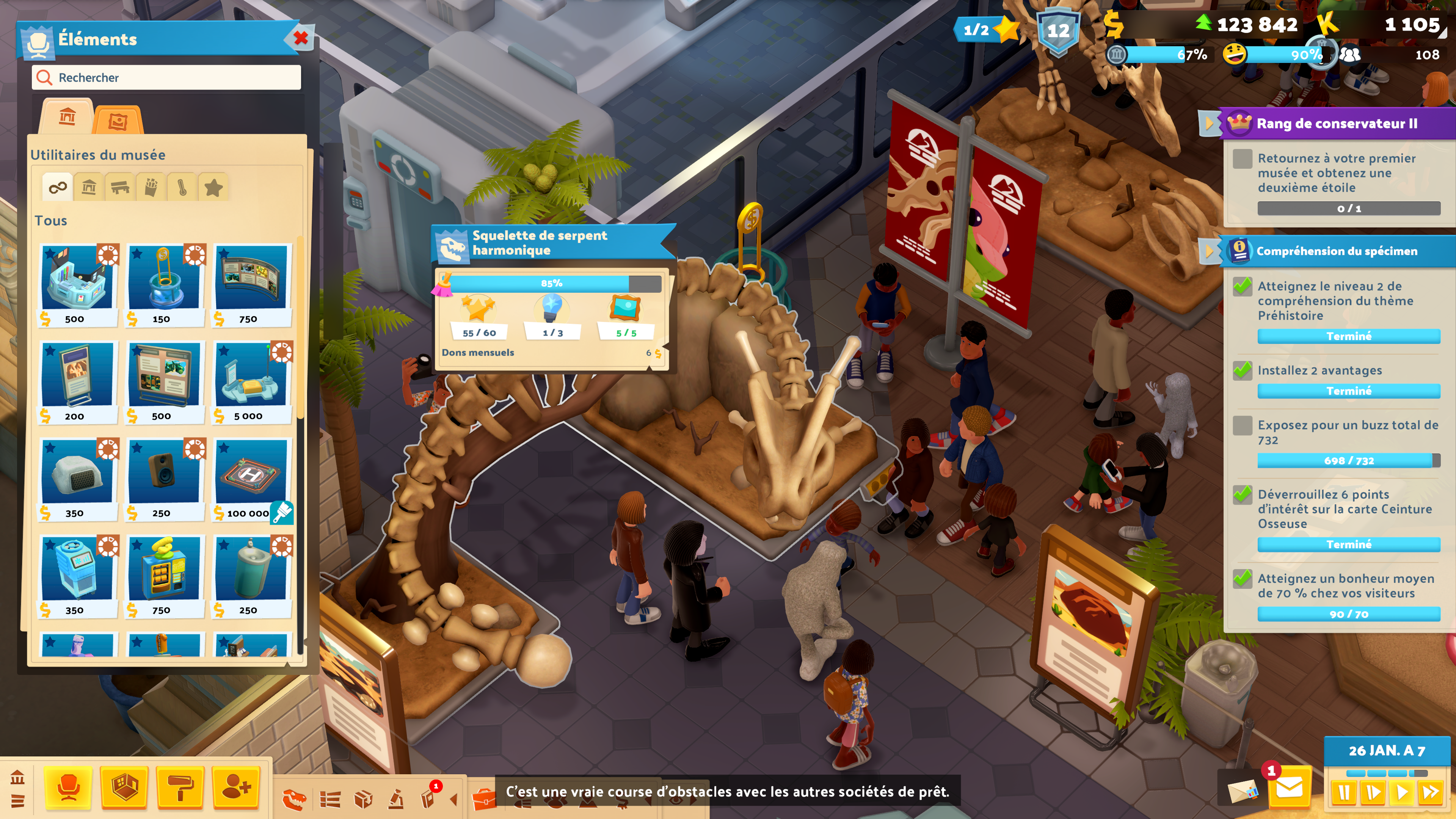 Cela évite à la campagne d’être purement didactique et trop linéaire. C’est son objectif principal, certes, mais elle est construite de telle façon que le joueur n’a pas l’impression de ne faire que suivre un tutoriel. L’implication est réelle et, contrairement à des jeux similaires où les campagnes didacticielles se limitent à des objectifs simples en mettant le joueur dans des situations spécifiques, il s’agit ici de partir de zéro et d’aboutir à un ensemble véritable de musées.