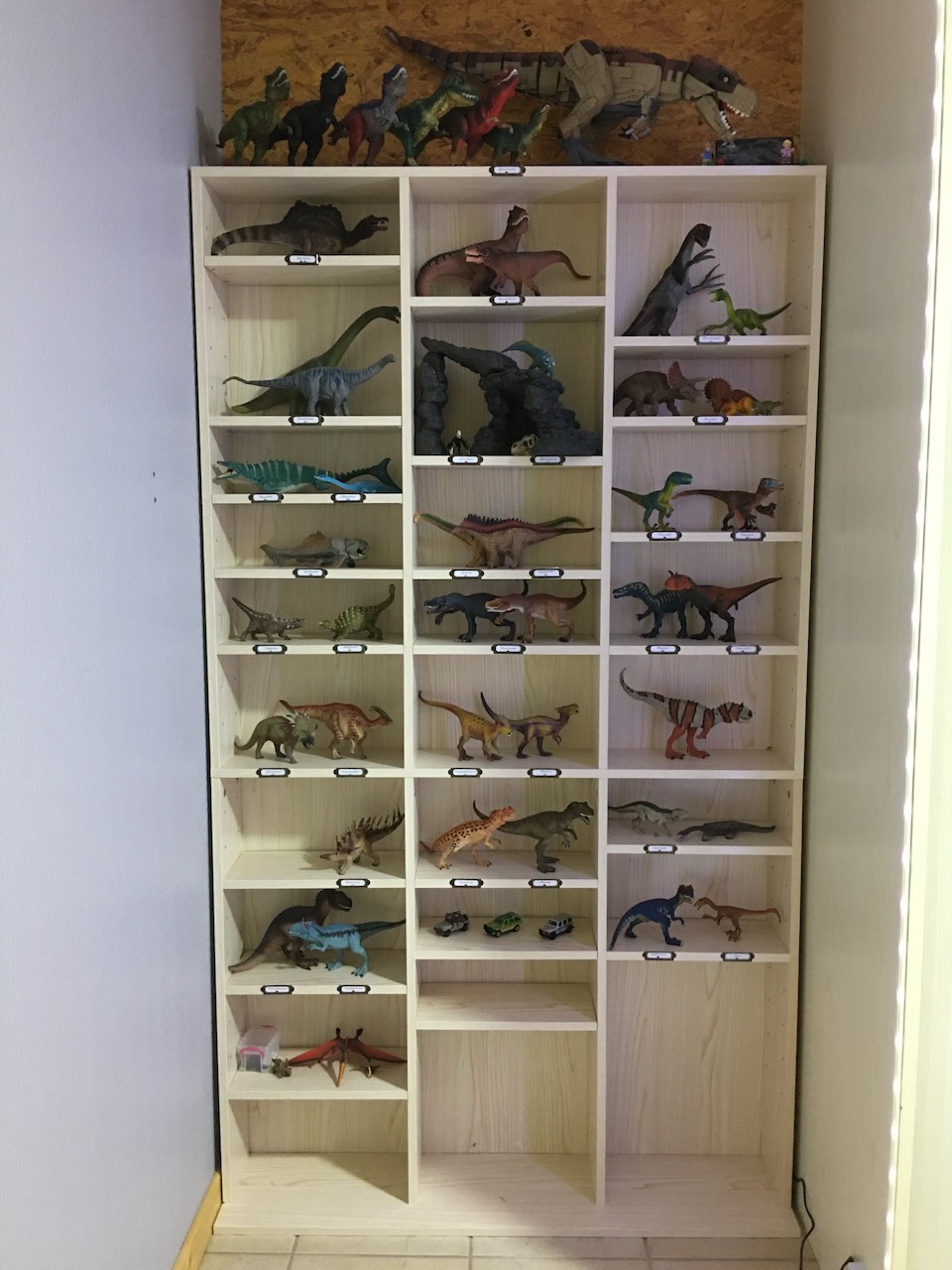 Ma collection Schleich est pratiquement terminée, selon mes critères. Elle trône désormais fièrement dans une étagère dédiée. Pour la petite histoire, initialement c’est une étagère à CD, qui se trouve avoir les dimensions parfaites pour accueillir même les plus grandes de mes figurines.