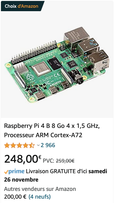 Bon, là, je me suis complètement planté. Avec la pénurie des composants électroniques, le prix des Raspberry Pi a décollé vers des sommets vertigineux. Pas le moment de racheter le truc.