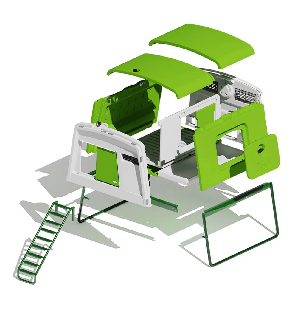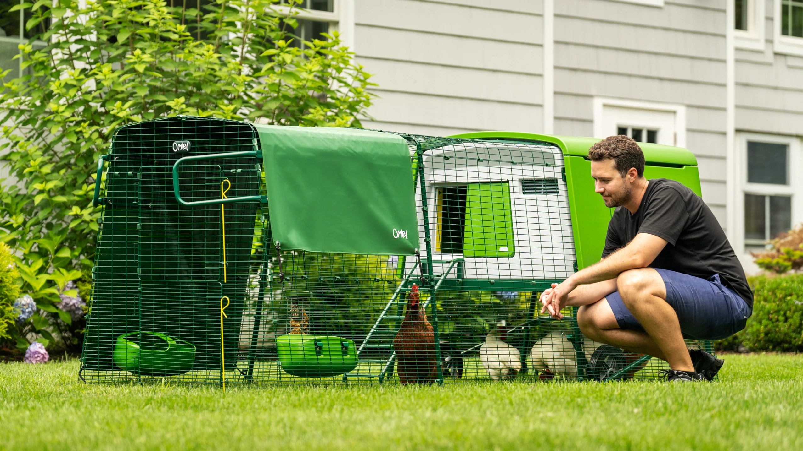Notre choix s’est porté sur l’Eglu Cube (à prononcer “igloo”) du fabriquant Omlet (logique !), avec son enclos et une bâche transparente destinée à protéger l’entrée du poulailler des intempéries. Nous approchons déjà la cinquième année d’utilisation (en 2024).