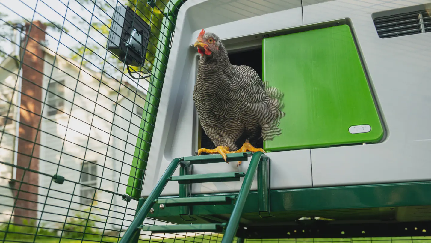 La lumière est discrète mais suffisante pour orienter les poules vers le poulailler à la tombée du jour. © Omlet