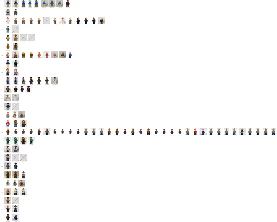 Terminons cette étude des minifigs par une visualisation complète de toutes les minifigs, et de toutes les têtes.