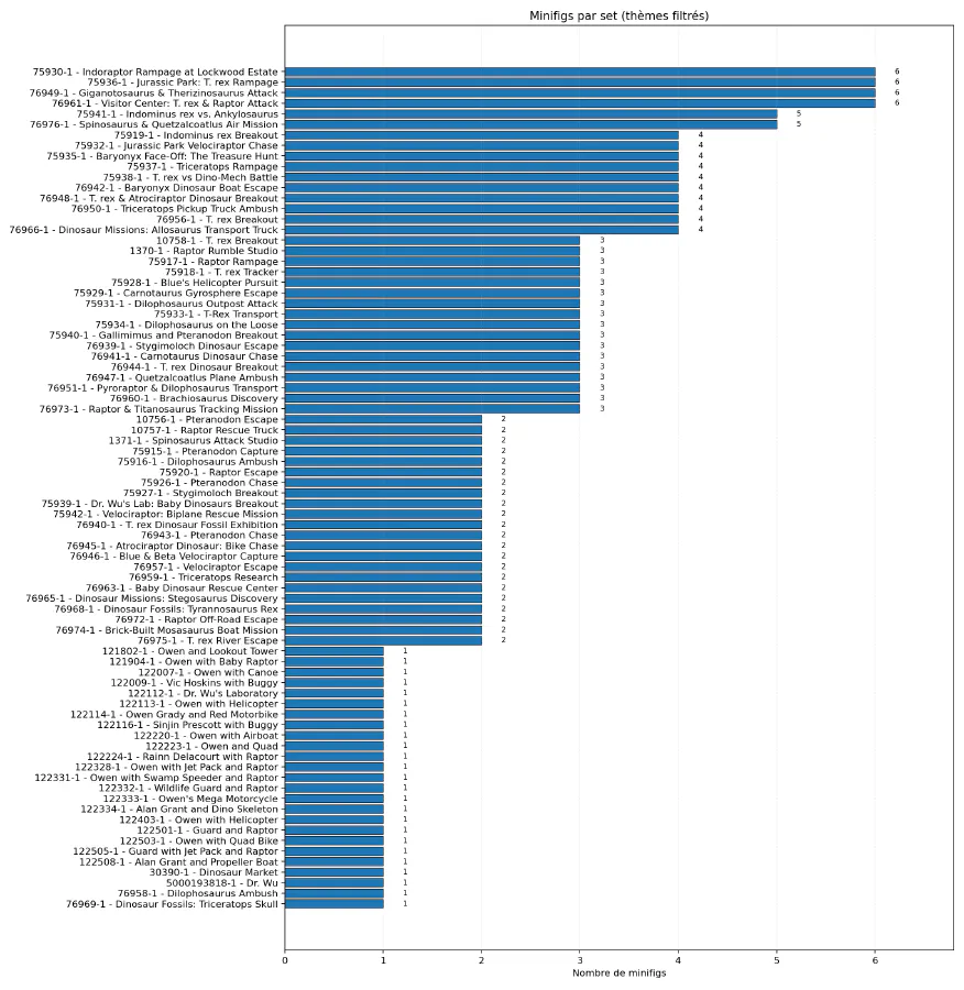 Je me suis exclusivement focalisé sur mes sets du thème Jurassic World, et sur les thèmes correspondants de rebrickable, en excluant toutefois les sous-thèmes de la gamme Duplo.