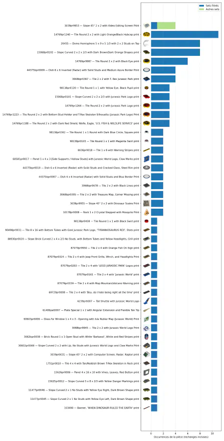 J’ai créé tous les graphiques présentés ici ; les images des sets ou des pièces ont été fournies par rebrickable.