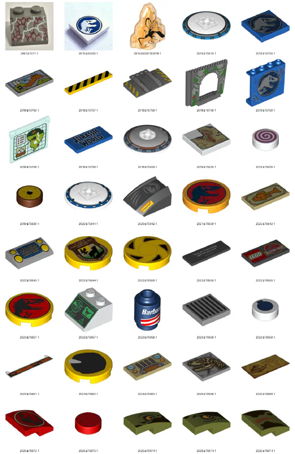 Notons qu’en réalité, tous les sets sortis depuis 2015 sont dans le thème Jurassic World : les sets du thème Jurassic World: Fallen Kingdom font réellement partie du thème Junior.