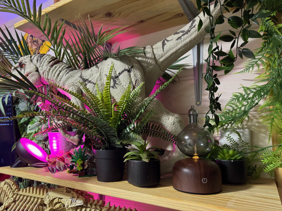 J’aménage mon bureau depuis quelques mois, principalement pour des raisons esthétiques (je veux m’entourer de ma collection Jurassic Park et Jurassic World), ce qui m’a conduit à installer un système d’éclairage basé sur l’écosystème Philips Hue (que j’ai brièvement mentionné auparavant). J’ai voulu compléter cette ambiance par des sons (émanant d’un HomePod mini) et, logiquement, par des odeurs (jusqu’à présent délivrées par des bougies). Tout cela contribue à me créer un environnement adapté à mes dispositions sensorielles particulières mentionnées au début de cet article.