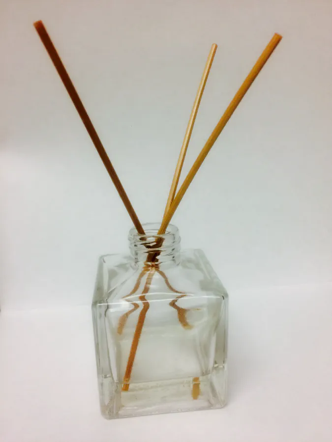 Ici, le consommable est un liquide parfumé, c’est-à-dire une formulation contenant des molécules odorantes et, selon les cas, des solvants ou d’autres additifs, placé dans un réservoir. Le dispositif lui associe une ou plusieurs tiges poreuses ou une mèche imprégnée, qui assurent la remontée du liquide et sa présentation à l’air libre. La diffusion repose sur la capillarité dans le matériau poreux, puis sur l’évaporation des composés volatils à la surface exposée.