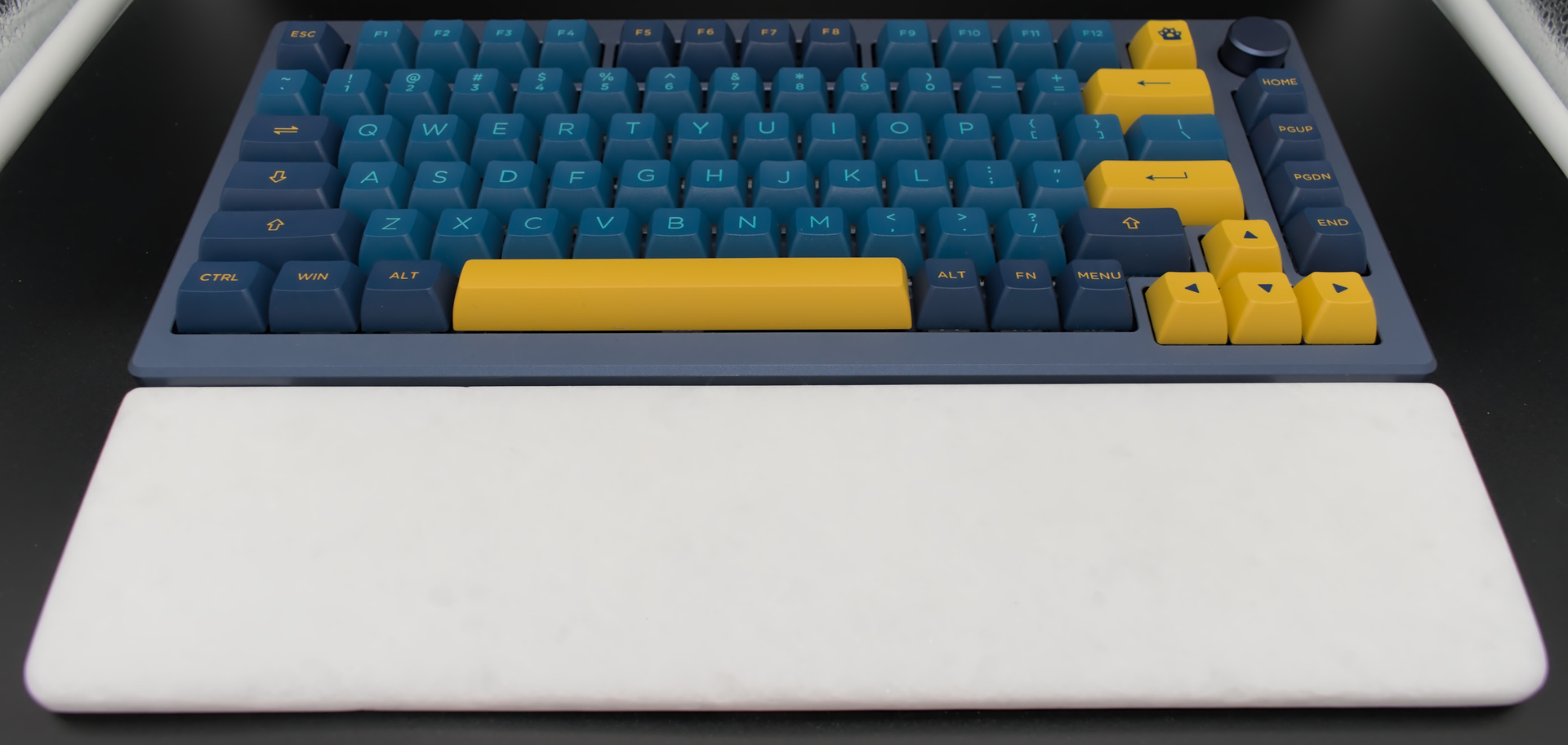 Le marbre est froid au premier contact, mais il prend et garde la chaleur des mains, sans pour autant la rendre désagréable comme ça peut l’être avec un repose-poignets en sky ou en cuir, qui vont devenir humides, ou en silicone qui va devenir collant. De plus, la surface de la pierre est parfaitement douce, soyeuse, agréable au toucher.