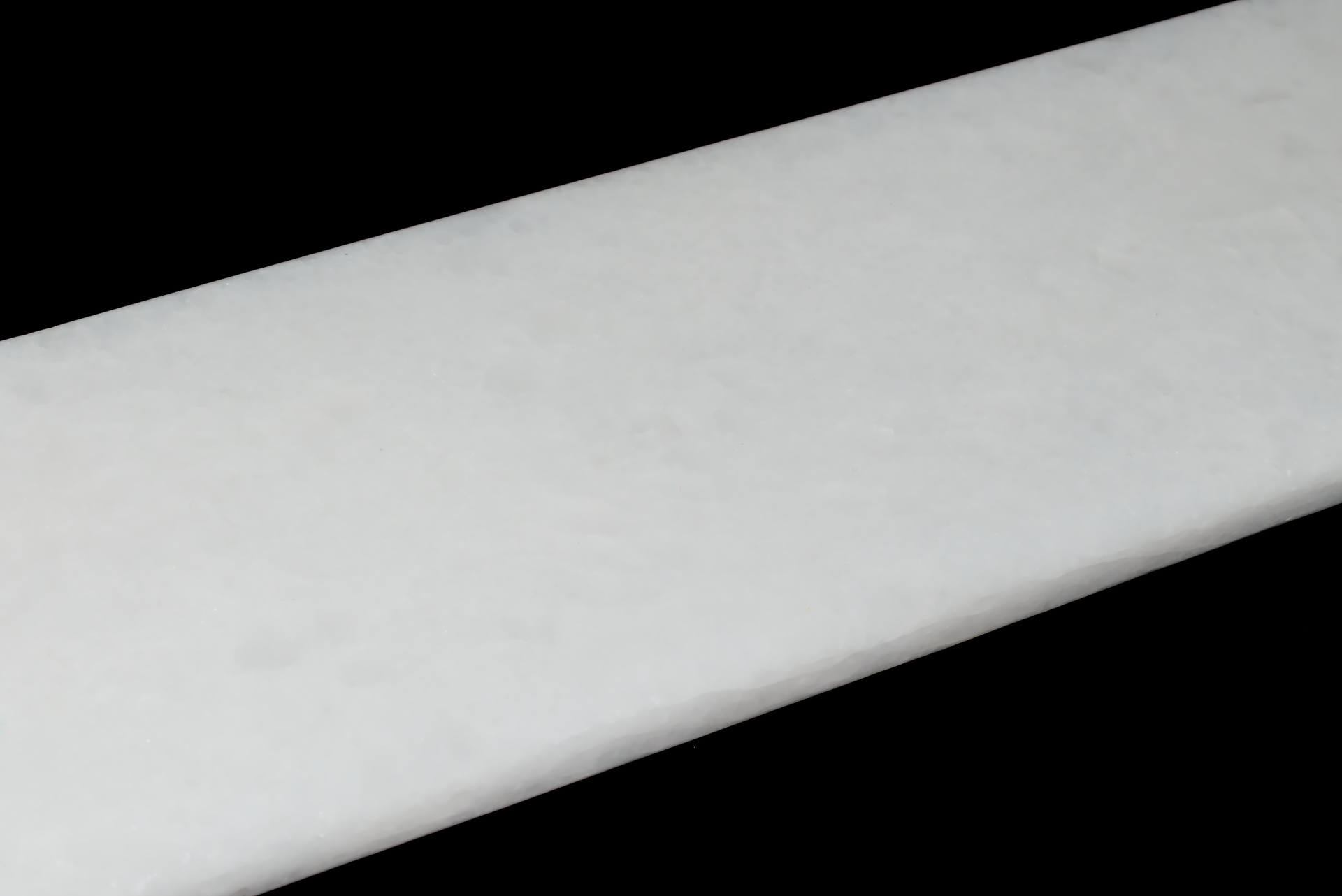 Connaissant quelques marbriers dans ma région, je leur ai demandé de m’en faire un avec les dimensions que je leur donnerai (à savoir 330x80mm, avec une hauteur minimale de 8mm et maximale de 18mm). Il a été conçu à partir d’Opal White, un type de marbre pratiquement pur extrait de carrières au Vietnam. Cette pierre présente la particularité d’être irisée, transparente par endroits, et lui confère un aspect visuel neutre : en la voyant de loin, c’est un bloc blanc presque pur, mais une fois sous les mains, on se rend compte de toutes ses subtilités.