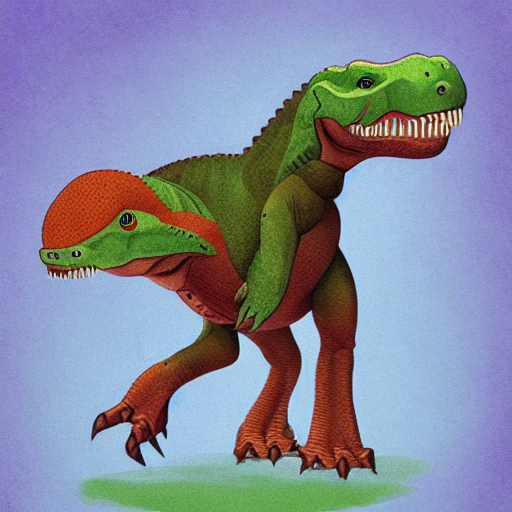 Je n’avais jamais vu une telle créature, même dans Spore. Loin d’être “cute”, c’est limite cauchemardesque ! L’aspect “cute” se retrouve dans l’oeil de la tête de gauche et l’apparence globale du T. rex se retrouve bien dans la tête de droite, mais l’IA a fusionné les deux, littéralement, façon siamois, privant au passage la tête de gauche de sa mâchoire inférieure mais l’affublant d’une crête étrange et de narines à la Picasso. Plus terrifiant que “cute” !