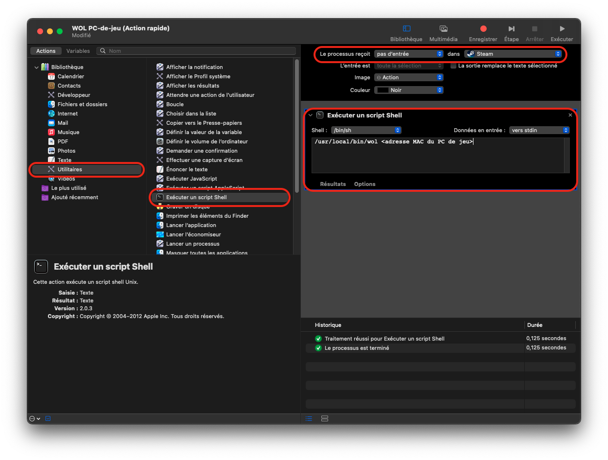 Ici, on va créer une action rapide pour Steam, qui va permettre de démarrer le PC de jeu via WoL en un clic de souris.