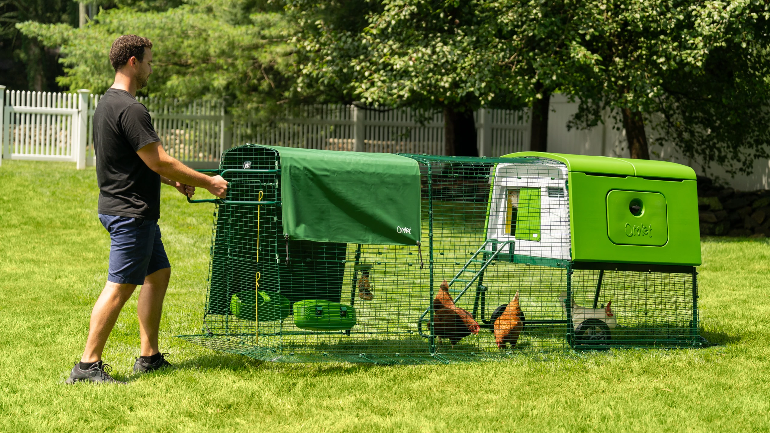 Notre choix s’est porté sur l’Eglu Cube (à prononcer “igloo”) du fabriquant Omlet (logique !), avec son enclos et une bâche transparente destinée à protéger l’entrée du poulailler des intempéries. Nous approchons déjà la cinquième année d’utilisation (en 2024).