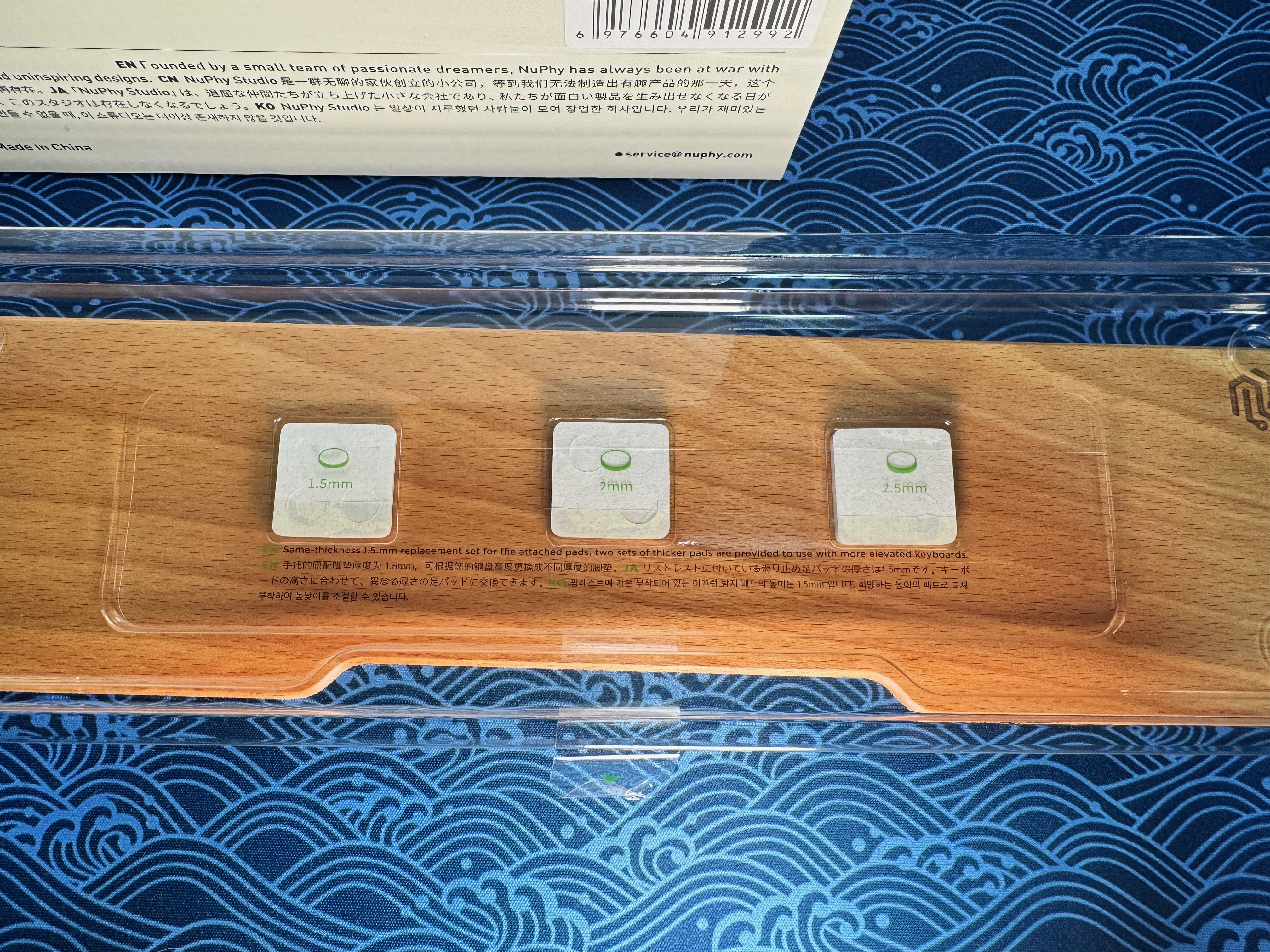 Le repose-poignet est fourni avec des patins supplémentaires pour le surélever en cas de besoin