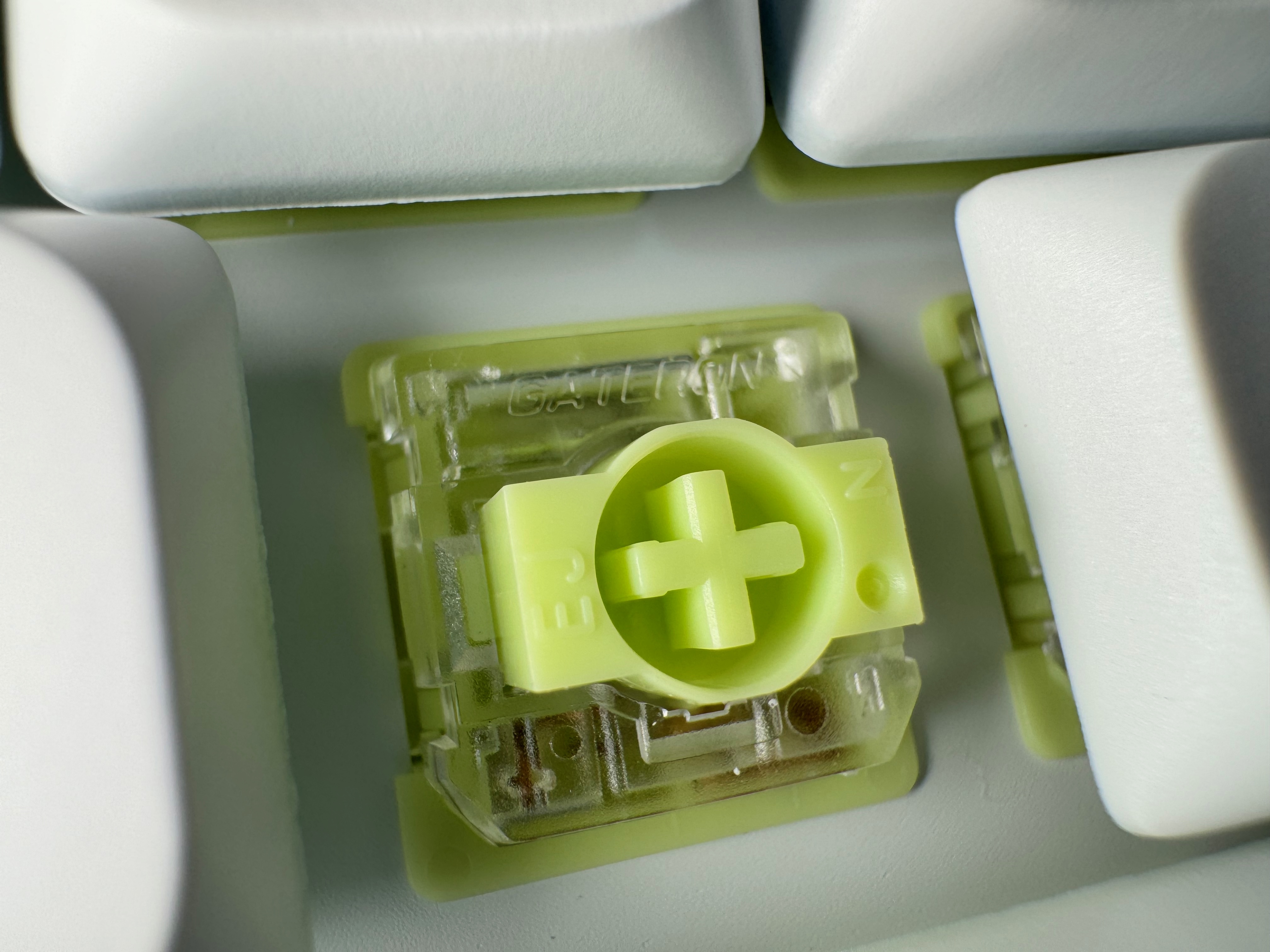 Détail d’un switche montrant qu’ils sont fabriqués par Gateron. Au passage, je suis impressionné par certaines photos prises avec mon iPhone 15 Pro…