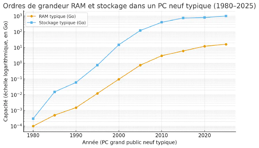 | Année | RAM typique (PC neuf) | Stockage typique (PC neuf) |
