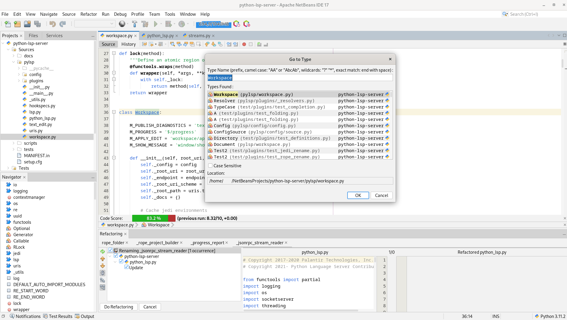 Après avoir testé code-server et theia, j’ai finalement opté pour openvscode-server. Notons que finalement, une grosse partie du code est de toute façon issu de Microsoft et de VSCode. Mon choix s’est donc essentiellement fait en fonction de critères plus philosophiques que techniques.