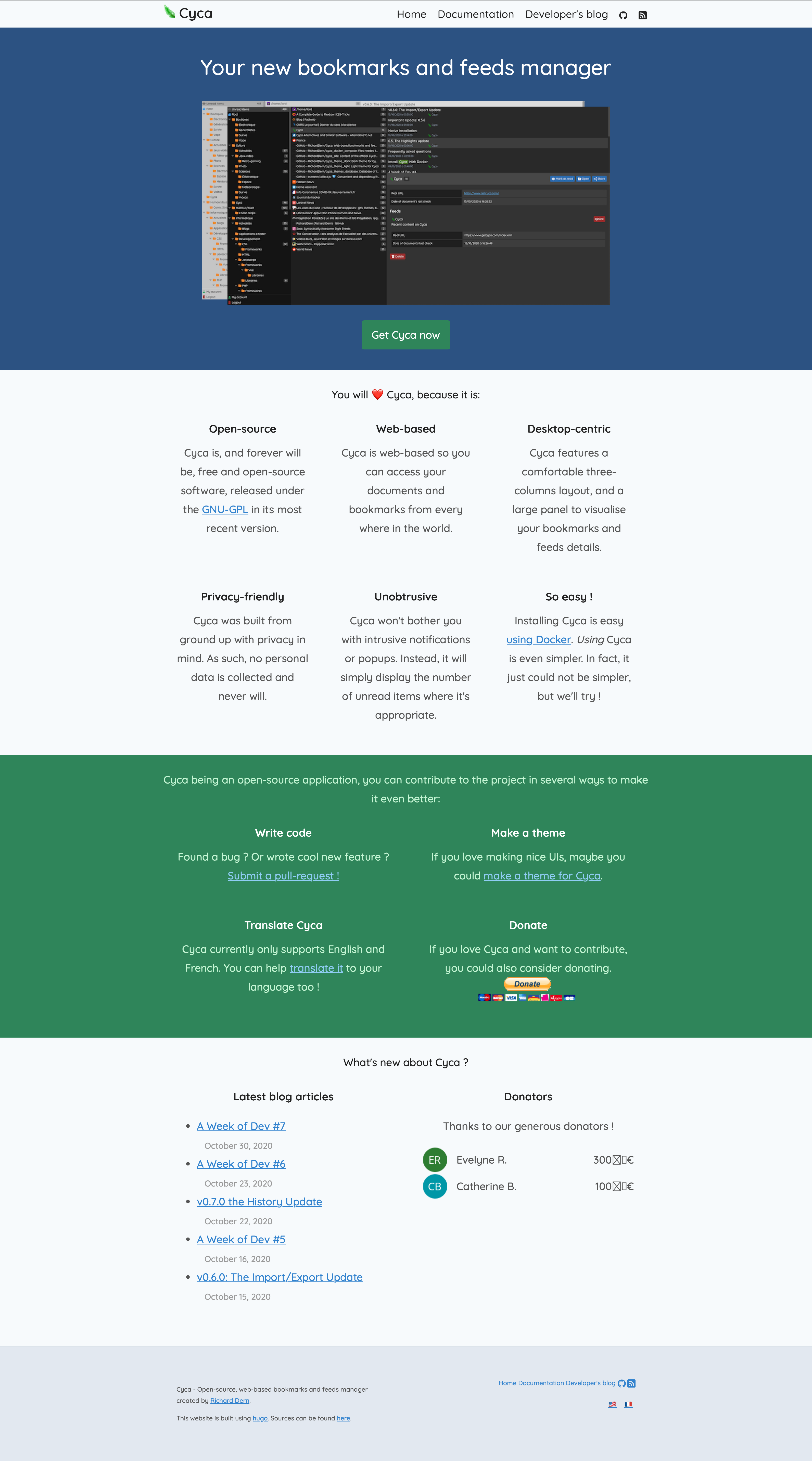 En mars 2015, j’ai repris le développement de Cyca et publié un premier site uniquement dédié à l’application.