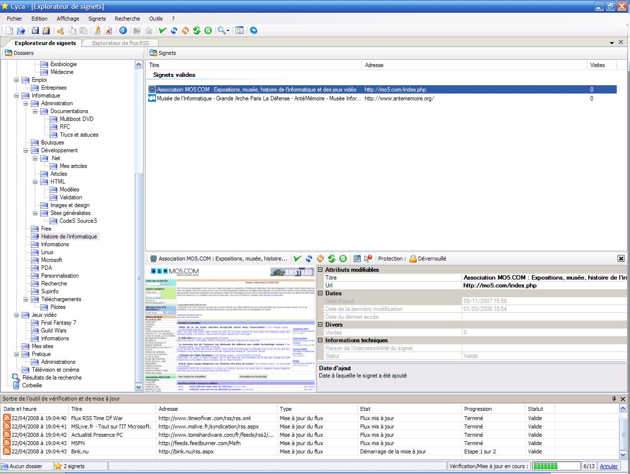 - Et surtout, BookmarksManager, qui deviendrait plus tard Cyca (dont on va abondamment parler plus tard).