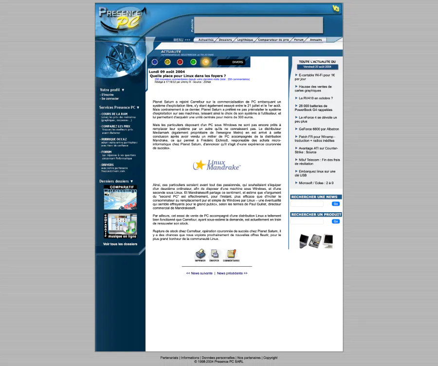 En août 2004, vous avez pu me lire dans les colonnes de Presence-PC. Ce fut mon premier job dans l’informatique.