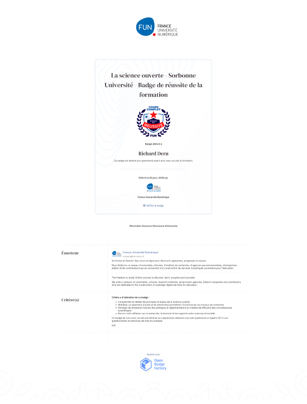 La science ouverte - Sorbonne Université - Badge de réussite de la formation