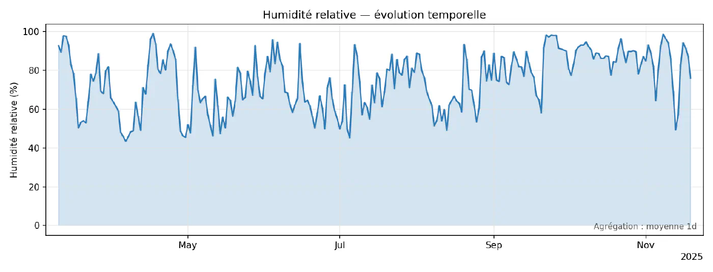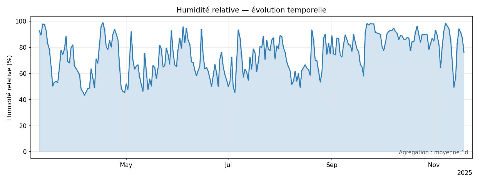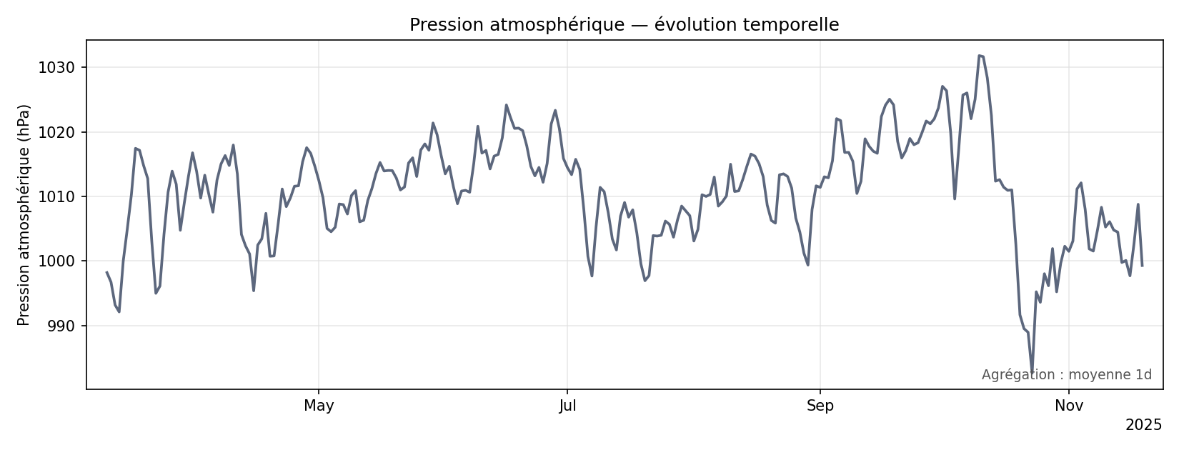 - repérer les paliers ou dérives de capteurs (pression trop plate, humidité coincée, etc.) ;