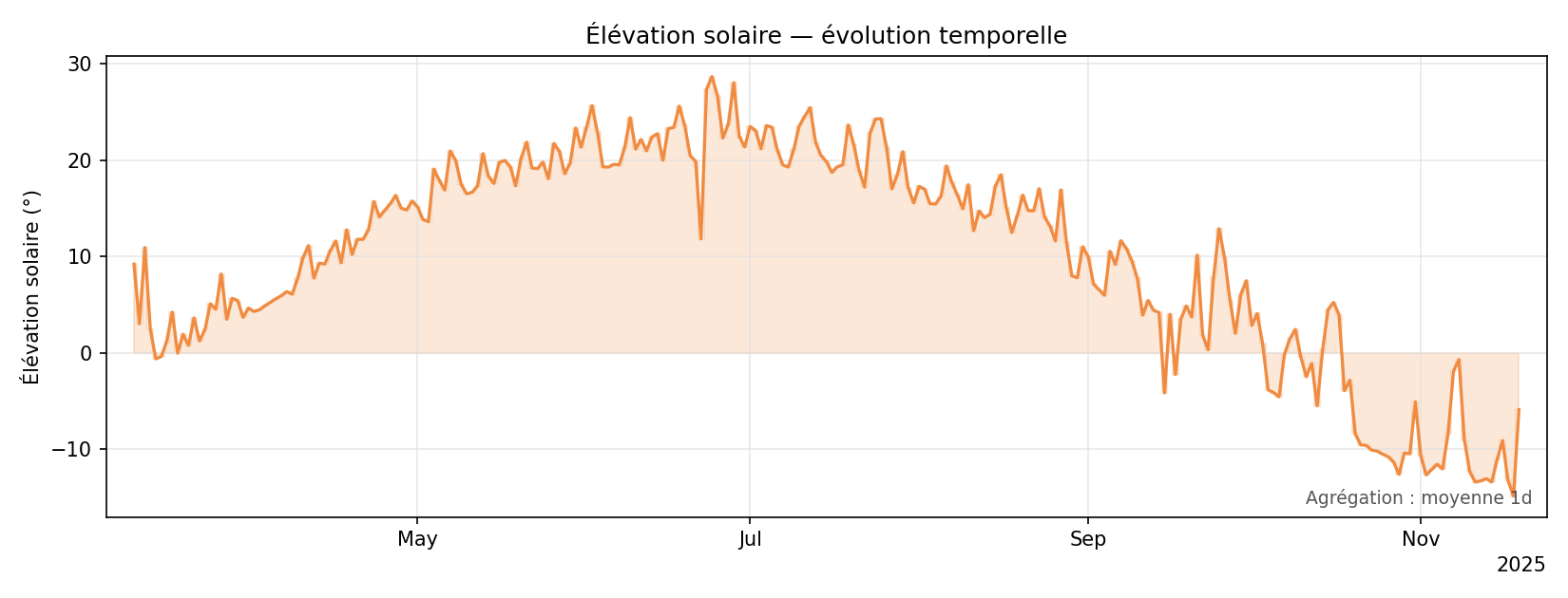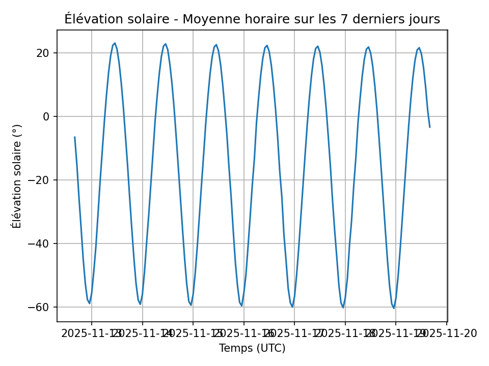 - vérifier le cycle quotidien de la température et de l’élévation solaire ;