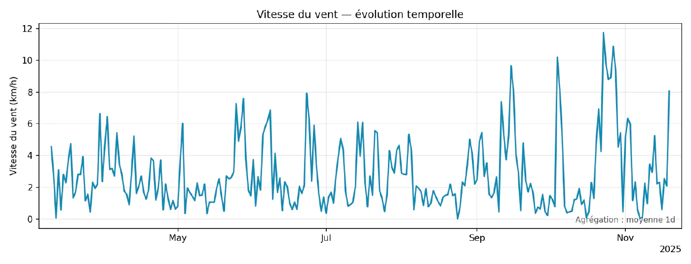 - repérer rapidement les saisons, épisodes pluvieux ou périodes de vent soutenu ;