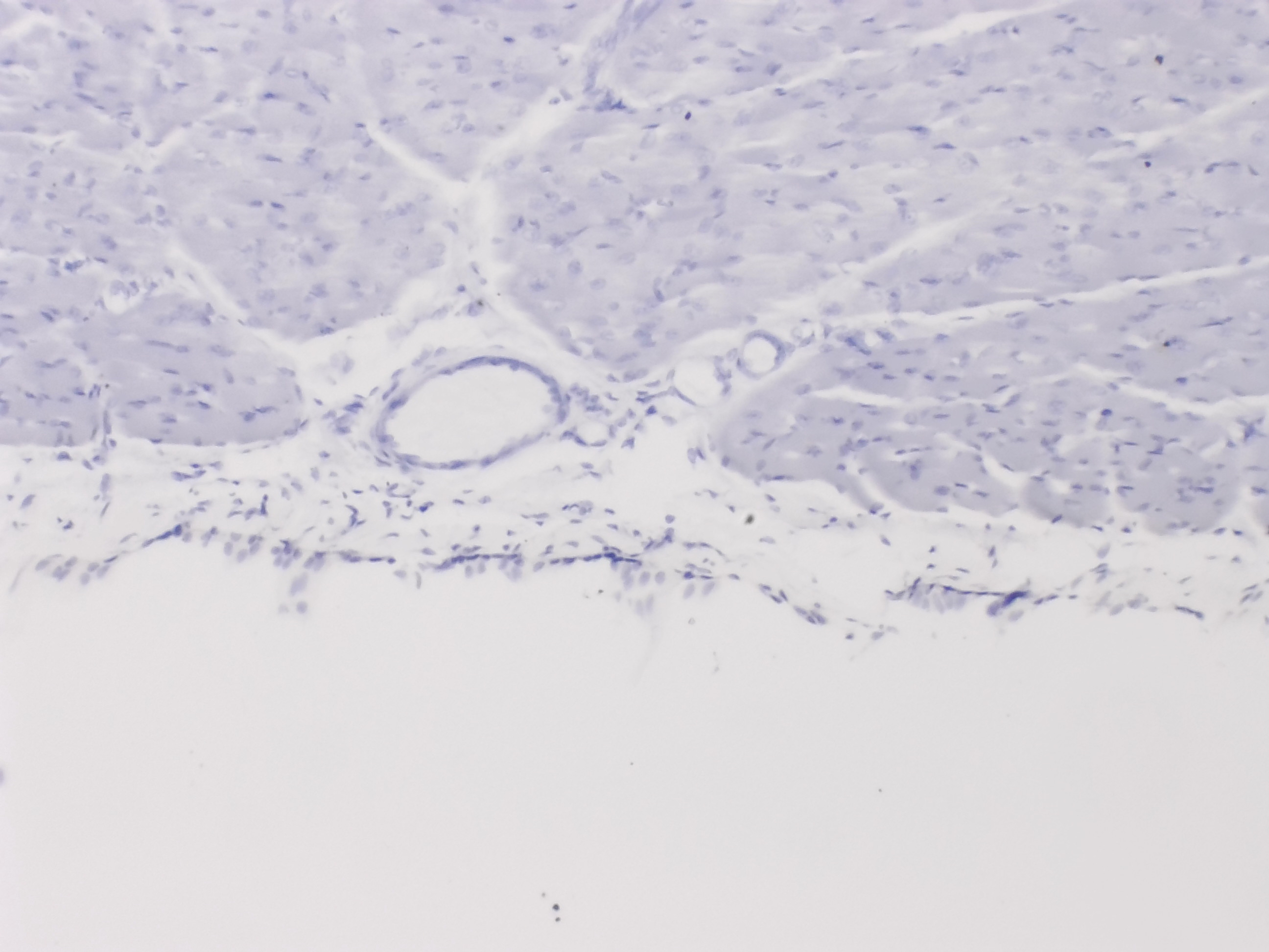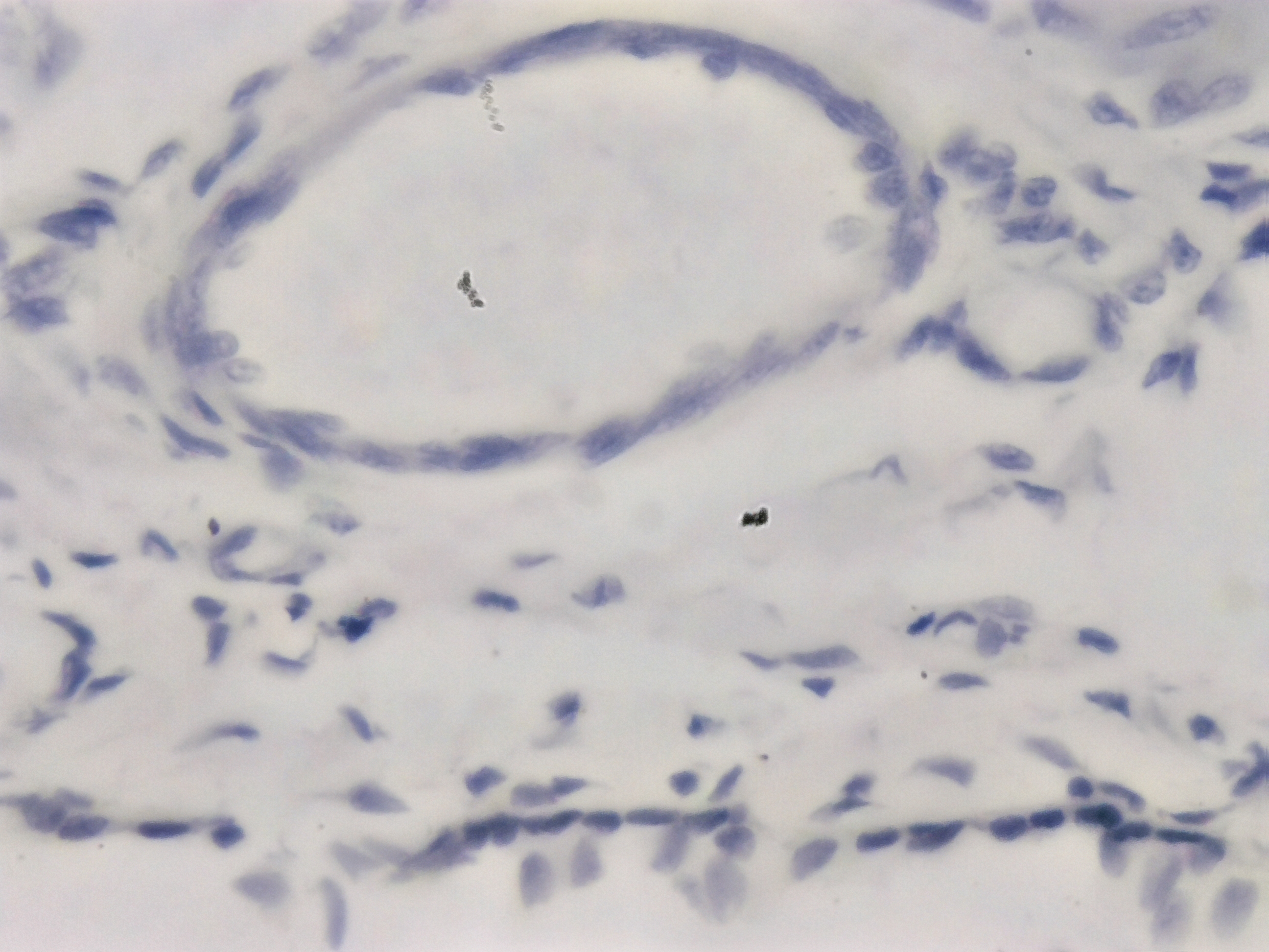 Je me suis focalisé sur cette structure particulière (ici observée au 10x), qui se révèle être une petite veine ou une artère.