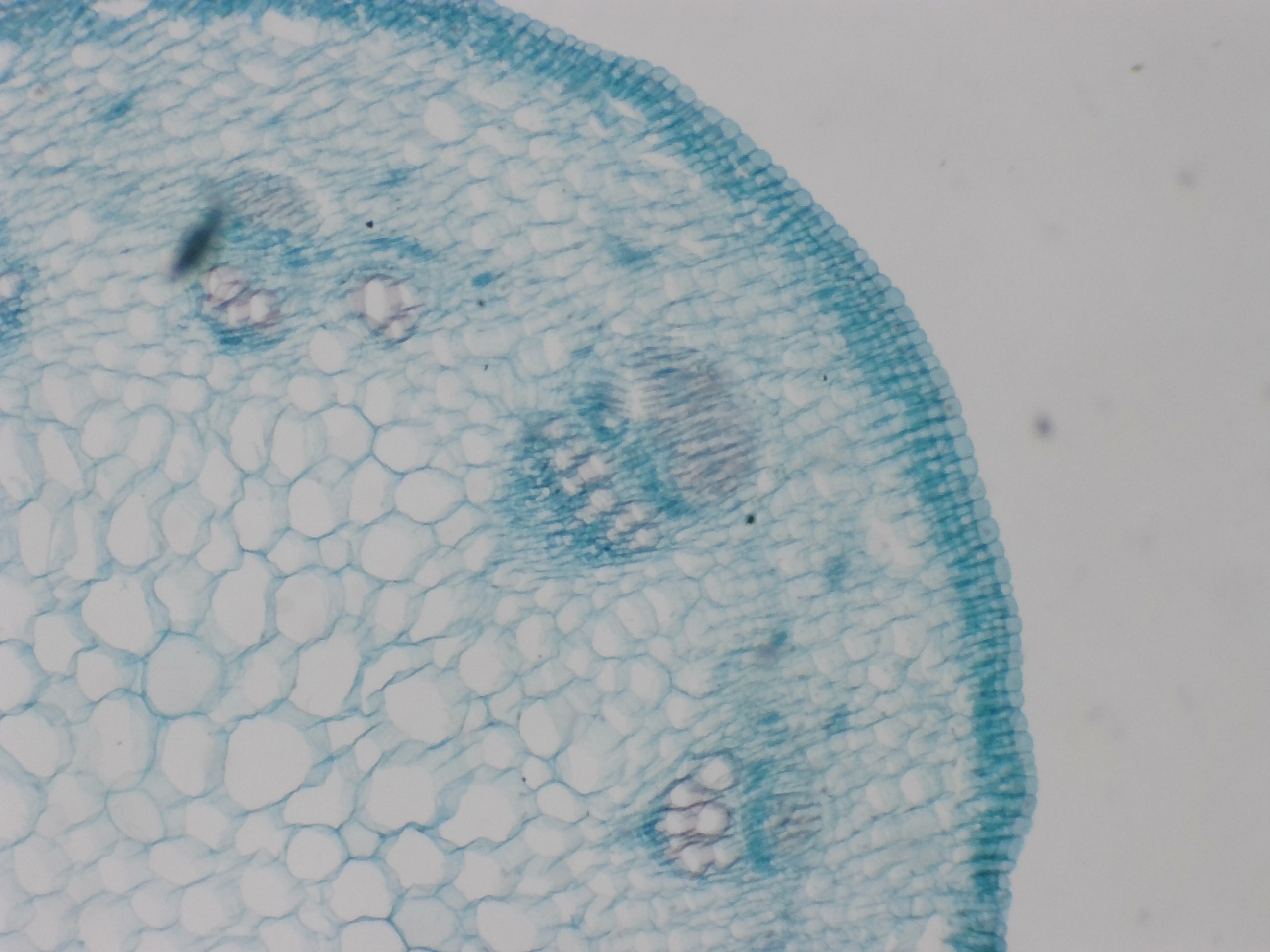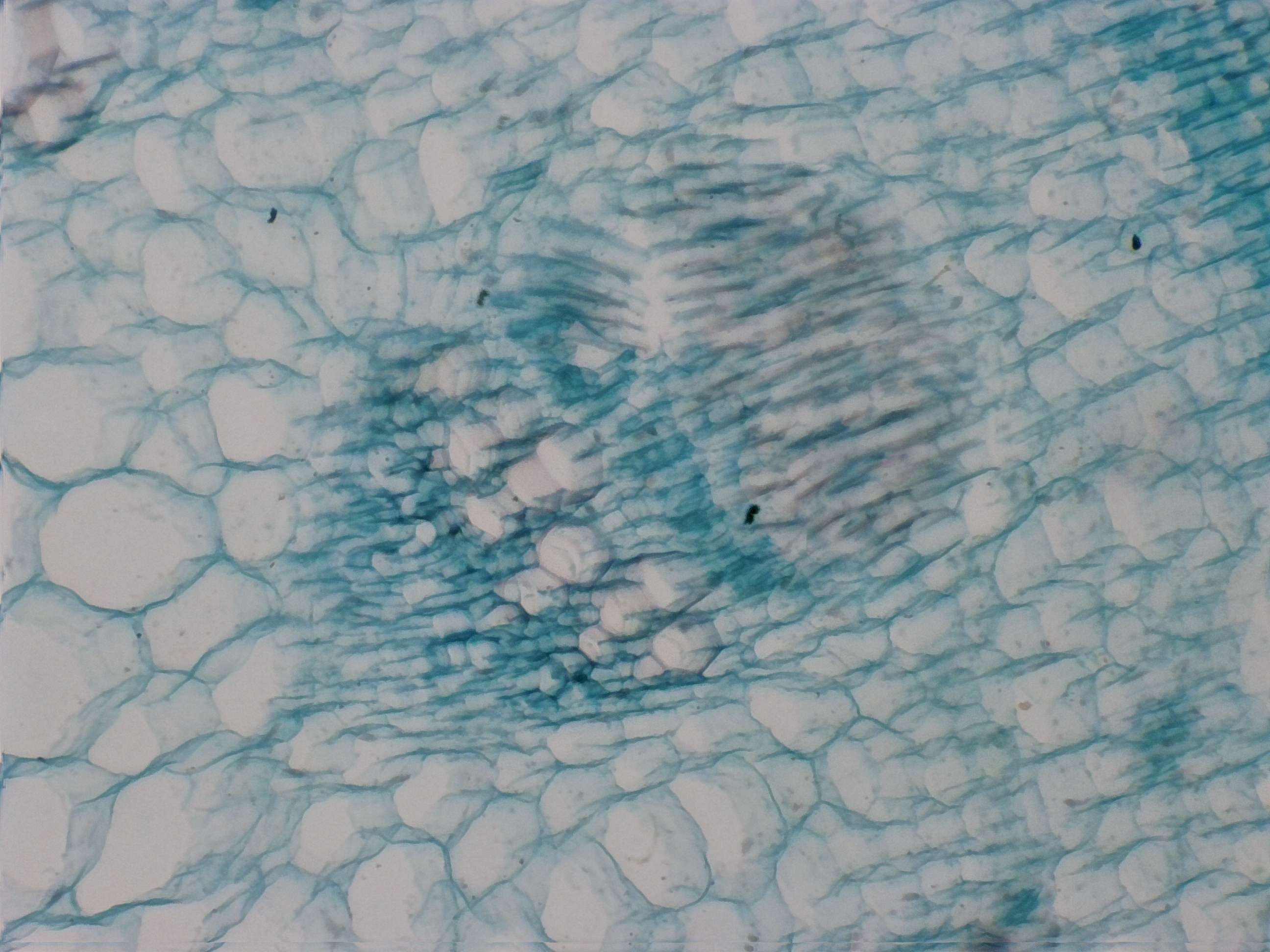 Comme dit précédemment, l’EDF améliore quelque peu la netteté, tout en montrant des détails intéressants. Ici, on peut observer les tissus vasculaires formant des faisceaux (à droite) orientés vers les cellules du parenchyme.