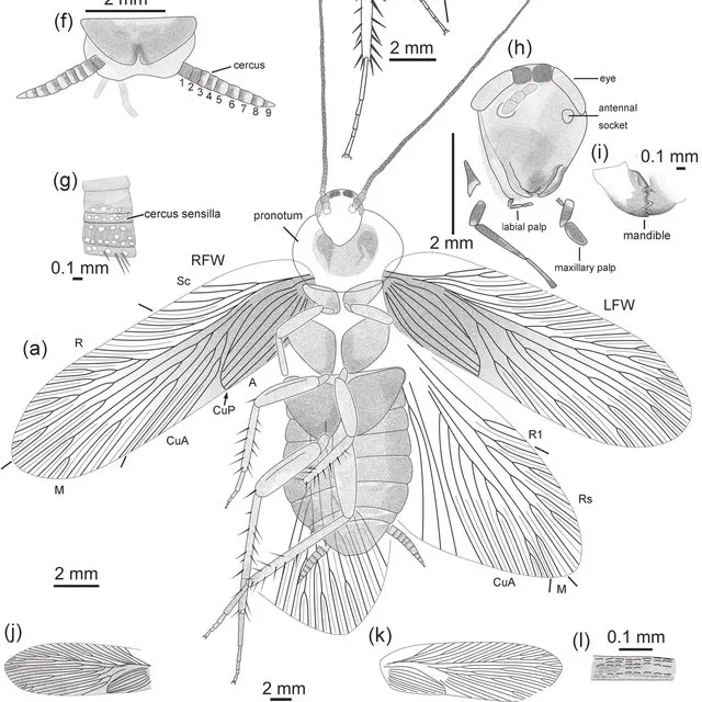 Les Mesoblattinidae constituent une famille éteinte de blattes ayant prospéré durant le Jurassique et le Crétacé. Considérées comme des ancêtres des blattes modernes, elles présentent une morphologie conservatrice avec des ailes bien développées et une capacité de reproduction via des oothèques (capsules d’œufs). Des spécimens bien préservés ont été découverts dans la formation de Yixian en Chine, offrant des détails précieux sur leur anatomie.