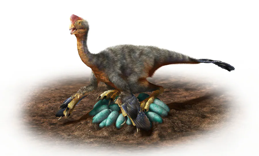 Une révision de cette lecture attendra 1995, lorsqu’un spectaculaire spécimen décrit dans Nature 8 montrait un grand oviraptoridé installé au-dessus de son nid dans une posture très comparable à celle d’un oiseau couveur. Plus tard, en 2001, la découverte d’un embryon d’oviraptoridé 9 à l’intérieur d’un œuf du même type a fortement contribué à fragiliser l’hypothèse du pillage.