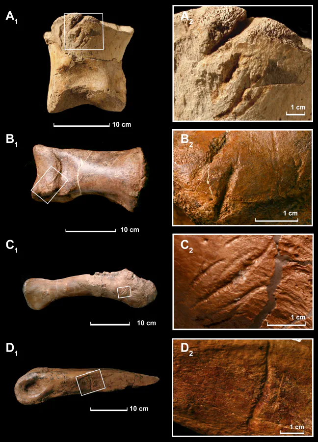 Une trace de morsure sur un os atteste un contact, parfois un mode d’alimentation, mais pas toujours le moment exact de ce contact. Un os mordu sans cicatrisation peut provenir d’un animal agonisant ou déjà mort. Beaucoup de fossiles ne permettent donc pas d’arbitrer proprement entre chasse et charognage.